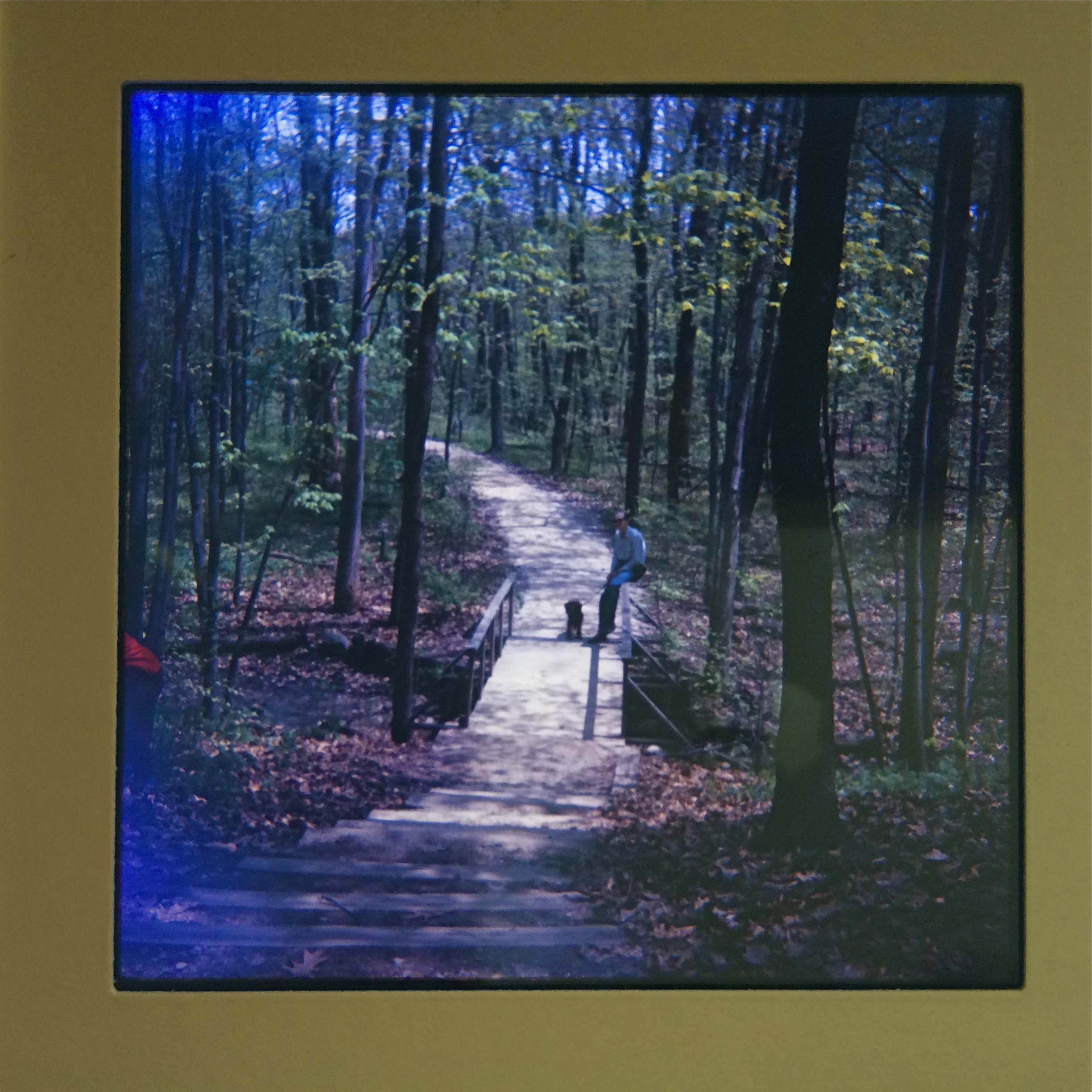 Yanking the shade off an old table lamp and unscrewing the bulb, he cut a hole in the bottom of a Mother’s Oats carton wide enough for the shaft of the lamp, connected lamp to box, and re-attached the bulb. Inside the box, he inserted a lining of aluminum foil to maximize the bulb’s meager brightness, then cut a hold in the box lid equivalent to the size of one of my slides. Across the opening, he taped a sheet of mylar, the matte-textured plastic that, as a draftsman, he always had around the house, so that the “hot spot” of the bulb would be diffused across the entire surface of the slide. Power on, mount a slide up top, and presto, a custom-built viewer that allowed me to at least see, if not magnify or project, my images. I was astonished.