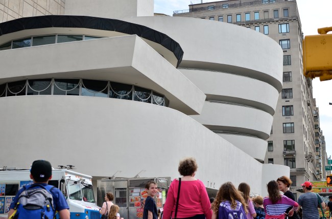 The Guggenheim was created specifically as a home for various mid-century art movements that had no official home within the conventional museum community of the Eisenhower era. Its design passed through many hands before completion, which happened after the deaths of both Frank Lloyd Wright and Solomon Guggenheim. Even after substantial revision and interference from people who frankly should never have been allowed admission to the place, the “Gugg” emerged with its essential elements intact, so far advanced as a public space that even now, sixty years on, it seems as if it’s just arriving for the first time. Some icons not only indelibly define themselves but also the times that created them, with a permanence that continues to feed the imaginations of other artists looking to craft their own visions. One critic once described the museum as a birthday cake. Perhaps that’s its magic: an occasion of joy, alight with illumination, imbued with the power to grant your every wish.