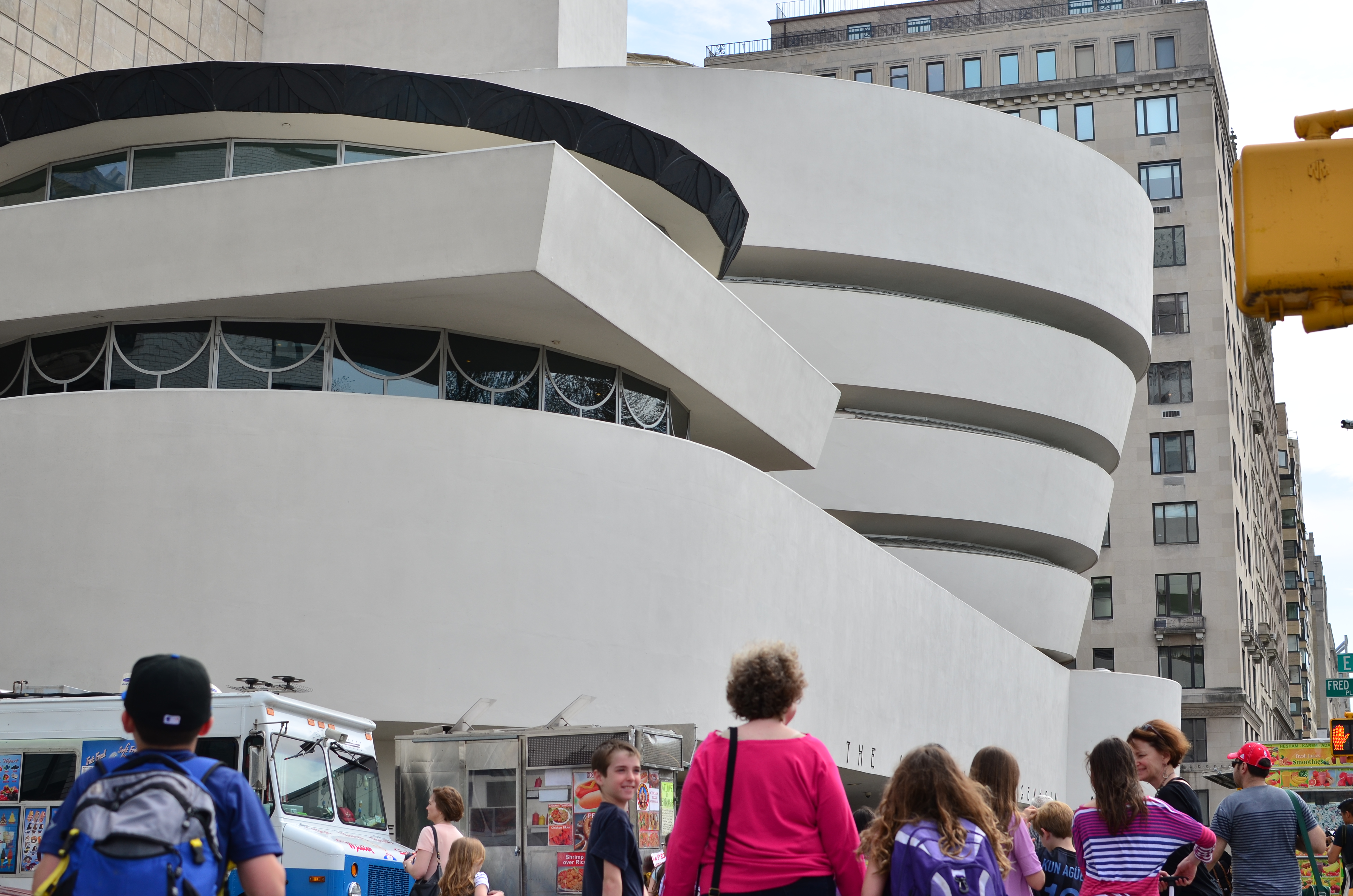 The Guggenheim was created specifically as a home for various mid-century art movements that had no official home within the conventional museum community of the Eisenhower era. Its design passed through many hands before completion, which happened after the deaths of both Frank Lloyd Wright and Solomon Guggenheim. Even after substantial revision and interference from people who frankly should never have been allowed admission to the place, the “Gugg” emerged with its essential elements intact, so far advanced as a public space that even now, sixty years on, it seems as if it’s just arriving for the first time. Some icons not only indelibly define themselves but also the times that created them, with a permanence that continues to feed the imaginations of other artists looking to craft their own visions. One critic once described the museum as a birthday cake. Perhaps that’s its magic: an occasion of joy, alight with illumination, imbued with the power to grant your every wish.