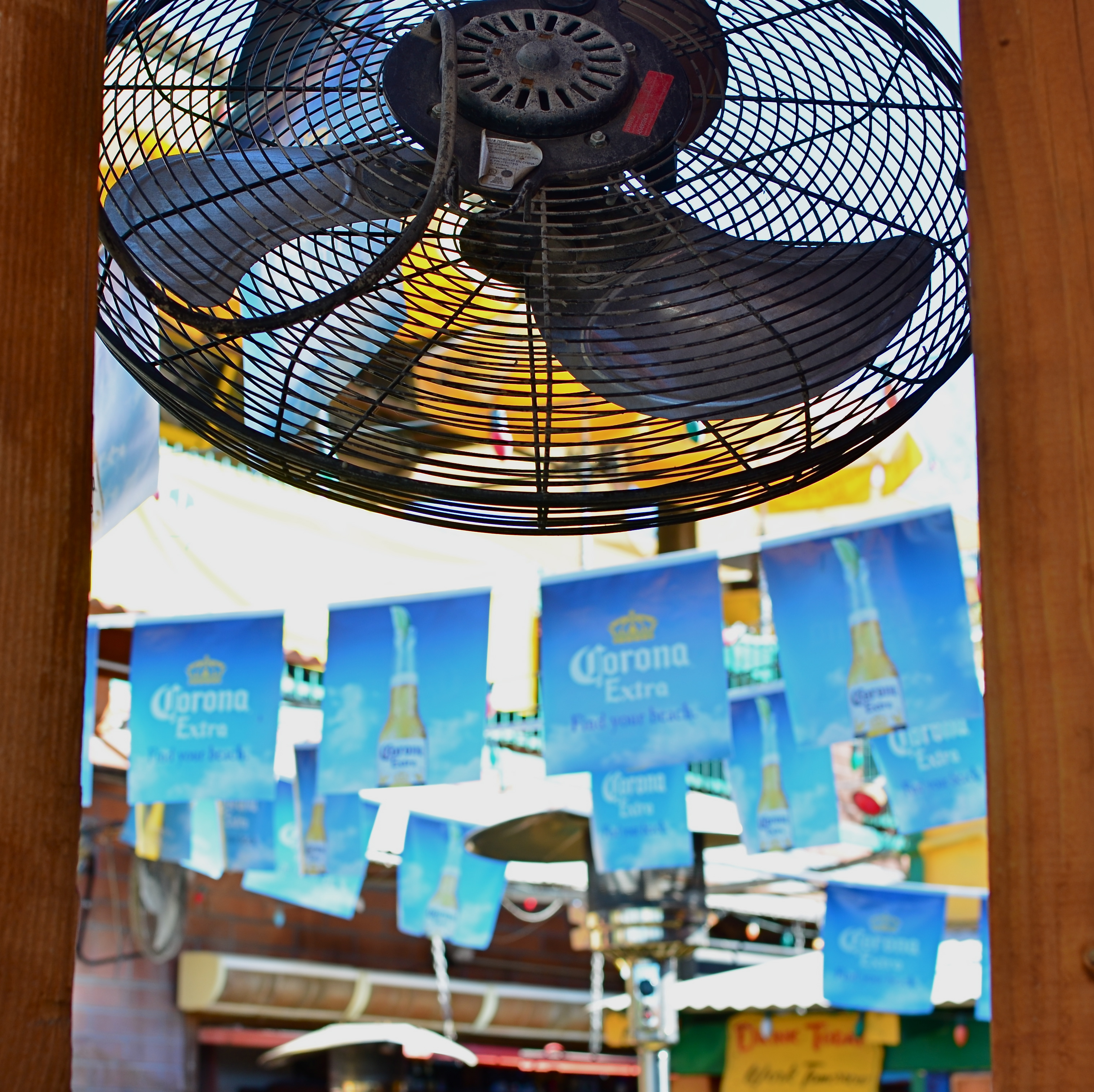 I stepped in a great one the other day. It’s a local college-crowd bar in Scottsdale, Arizona, where 99% of the customers sit outside on makeshift benches, shielded from the desert sun by garish Corona umbrellas, warmed by patio heaters, and flanked by loud pennants, strings of aerial lightbulbs and neon booze ads. The place radiates fun, and, even during the daylight hours before it opens, it just screams party. The pictures should take themselves, right?