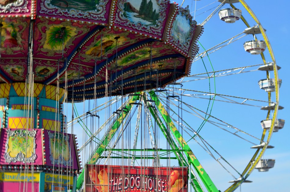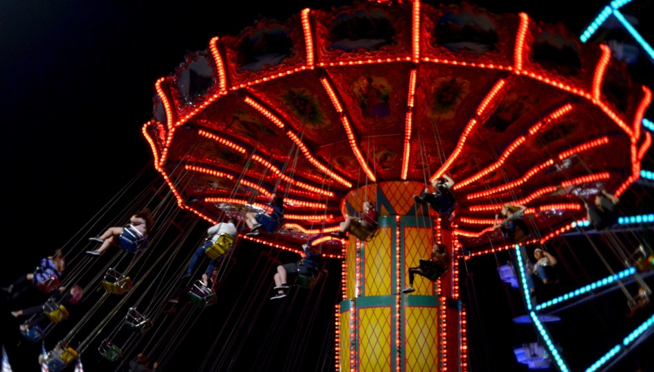 Decades later, we hardly stop to consider how very distinctive a city’s day is from its night. It seems as if things have always been this way, with many of us customizing the bright/dark light schemes of our personal gardens and homes in a way that only city planners and showmen could have accomplished a century ago. And yet, there are still things which create dramatic contrast between its daytime and nighttime versions. One of these is the brash collision of color and sensation that, as a holdover from the 1800’s, is finally vanishing from American life: the carnival midway. Subtle as a brickbat, corny as a Kansas cob and vivid to the point of vulgarity, carnies still crop up in vacant lots and small towns across America, continuing to enchant with their odd mix of ballyhoo and mystery. They are brash, loud, crude, and great fun. All our 21st-century entertainment options off to the side, there is still something visually visceral about these slightly disreputable encampments from the days of P.T. Barnum. They cry out for cameras, reminding us of an era in which a mere change of light was enough to quicken the imagination.