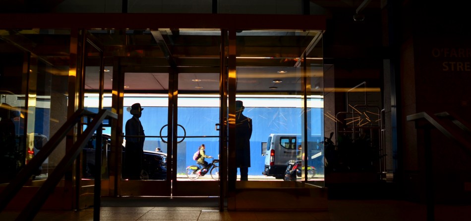 We’ve spoken at length in this forum about how the only picture you truly regret is the one you didn’t take, and, as cliched as that statement is, it bears repeating. Because among the shots that miss by a mile are the ones that only miss by inches, and those are the ones that keep us doing this. In the above image, I am scrambling. A lot. I am standing near the front entrance of what’s soon to become my former hotel, and waiting, waiting, waiting, for my wife to contact/hire a ride share service. I decide to burn away those unused moments by trying to catch the uniformed staff at their endless task of welcomes/goodbyes for guests connecting to curbside transportation. I’m pushing a carry-on, wearing a DSLR by a shoulder strap and trying to guess an exposure that I’ll have to try to hit one-handed. I’m seconds away from being ready when I’m told our ride is three minutes away. We have plenty of time to get to the airport, but just the same, I’m now on deadline. A short fuse. Make or break. I don’t want to dawdle needlessly, since, over a long weekend, I have already paused to frame enough shots that I have exhausted my allotted ration of marital goodwill. You know the moment. It’s somewhere between an exasperated sigh and the sentence, “are you still taking pictures?” I also hate to fight too ardently for this one, since I’m only half sure of not only the exposure but the concept in general. I should probably just grab by bag and git.