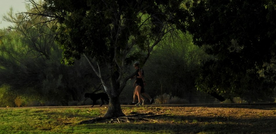 Even in these soul-testing times, the scene shown here is hardly front page news; Couple Walks Dog. And yet, its very ordinariness (may not be a word, look it up, campers) can be reassuring in a time when routine has been ripped to rags and not much can be taken for granted. In such a world, a child’s laugh, a sunlit hollow, a scene that appears to be part of An Uninterrupted Life, can become precious. Hardly forty-eight hours has passed since I shot this picture, and yet, in that short span of time, it has gone from a casual snap to something I hold to be precious. Certainly not for any innate skill in its execution or groundbreakingly fresh approach, but, again, for the appearance that, despite everything, some things will go on, and that we can well afford, in this superabundance of spare time, to slow down and savor them.