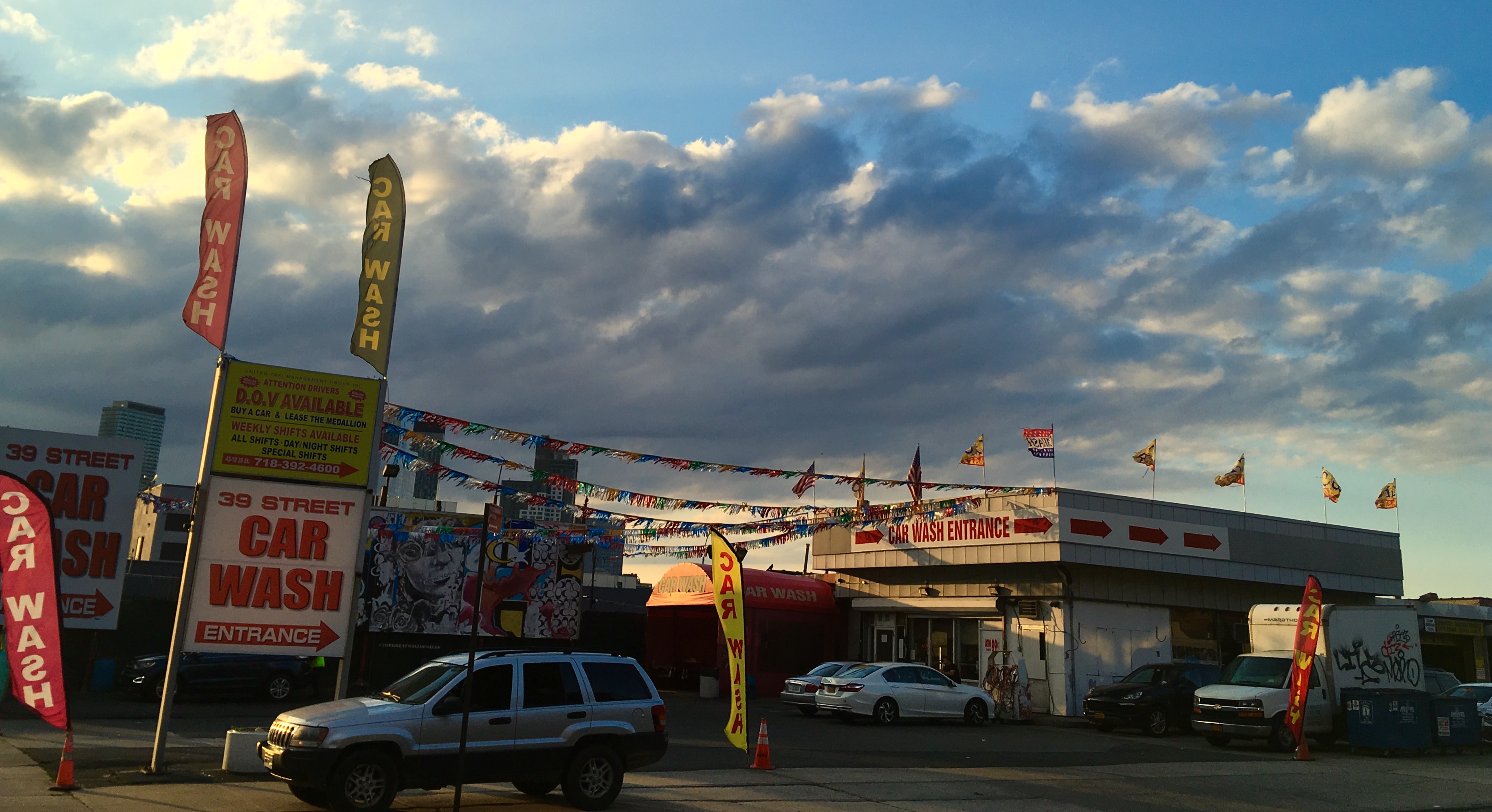 As to the image shown here, I’d like to say it was the result of some marvelous act of planning, but the fact is, the entire scene, bathed in the deep golds of dusk, was seen and seized in an instant. I remember being struck by the feeling that this kind of light was so miraculous that it could confer nobility on even a car wash in a shopworn neighborhood, and that a momentary break in the clouds had given the reds and yellows the hyper-saturated look of an old, slow film stock like Kodachrome. Again, all these impressions registered inside a few seconds, and I went for it. The result reminded me that, once, someone thought this car wash would at least be neat, or efficient, or attractive. Sometimes that dream is totally submerged in the crust of What Happened Later. But I feel compelled to search for it anyway, to confer grace on what the dreamers saw. After all, under the skin, we’re all in the same game.