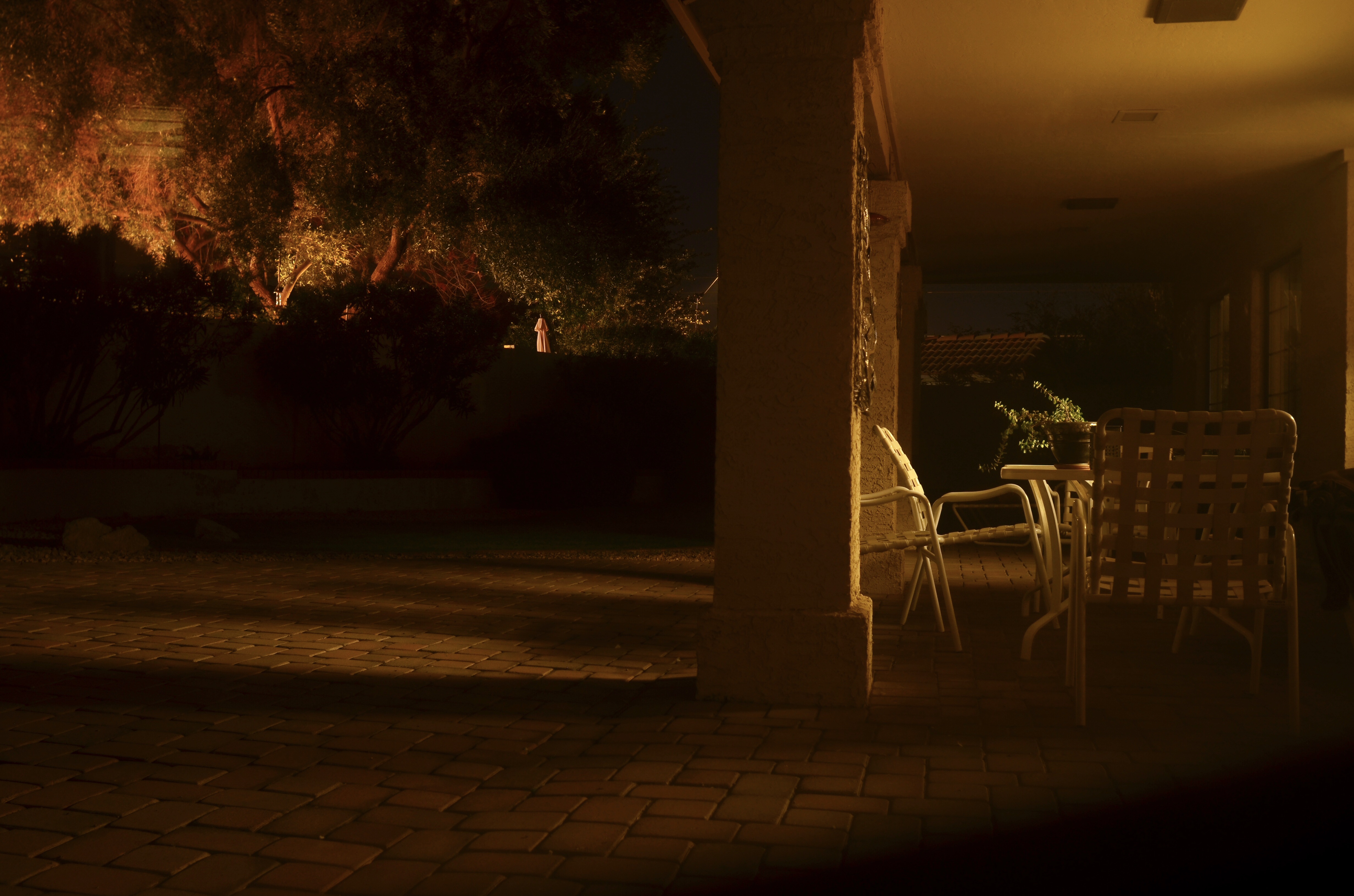 What you see here is the attempt to imprison two years within a single image. I was struck, New Year’s Eve, by the contrast between my party-prone neighbors (they of the brightly lit trees to the left) and my own party-resistant nature (the quiet patio to the right), so much so that I thought the comparison of the two worlds was worth a picture. I set up the camera from my bedroom window and ran a few tests as the last hours of 2019 drained away, then tripped my remote timer in the final seconds of that dying year, so that the 43-second exposure would originate in one year and end in the next. Nothing much would change over the taking of the image, but I would know that I had crammed two years into one frame. Like time itself, a trick, an illusion. Turns out, that one year looks quite like another, with less to distinguish them than there is to distinguish my neighbor’s busy yard from my still one. There wasn’t so much as a fleeting firecracker light trail to betray the secret that I had taken a picture of time travel. Just the strange fable in my head. Just as it’s always been.