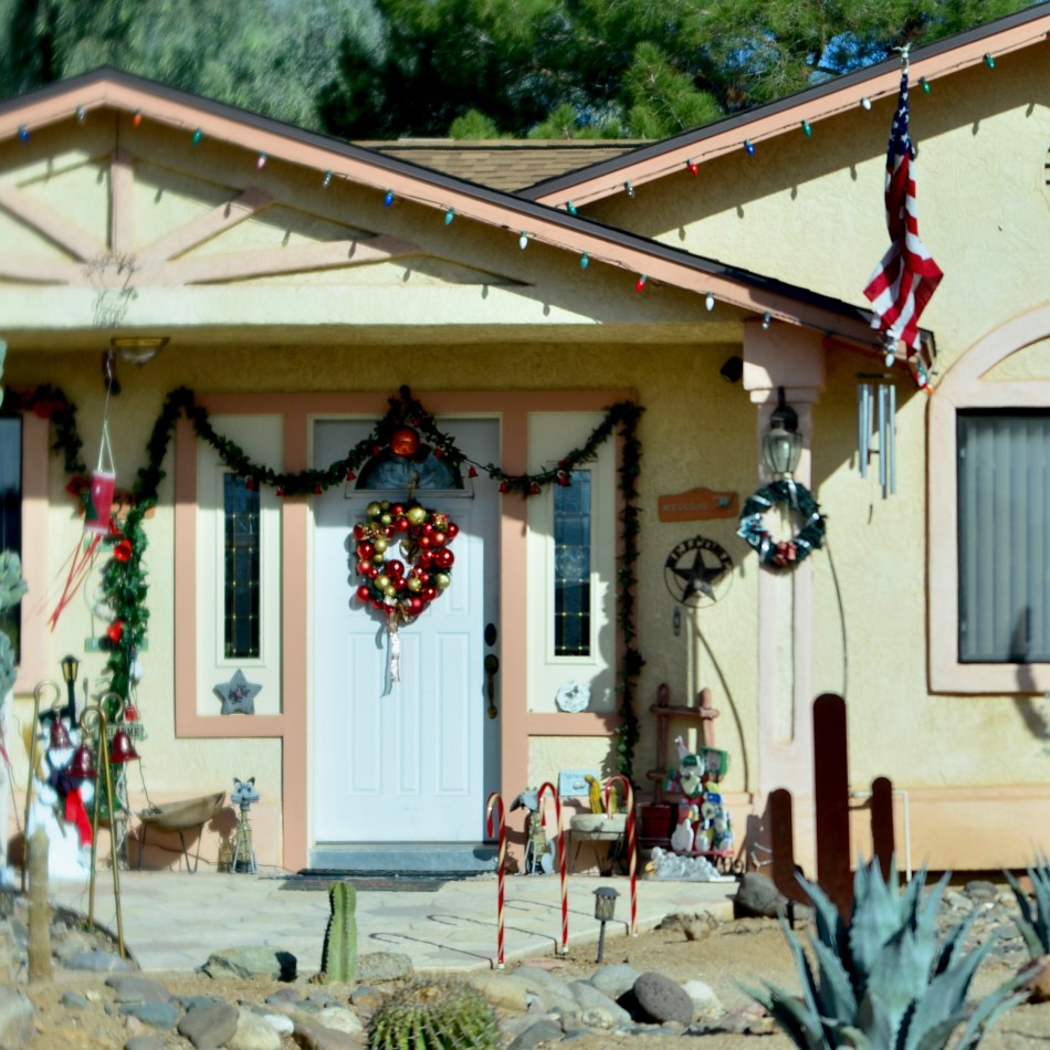 In the years since that first reading, I have tried to train my photographer’s eye to look beyond the big and loud of Christmas to find the small and soft iterations of the holiday, those places where its spirit must inch its way skyward like a wildflower struggling through a crack in the sidewalk. I see some amazing testaments to human survival in the modest windows and tiny yards where many a loving remembrance resides.
