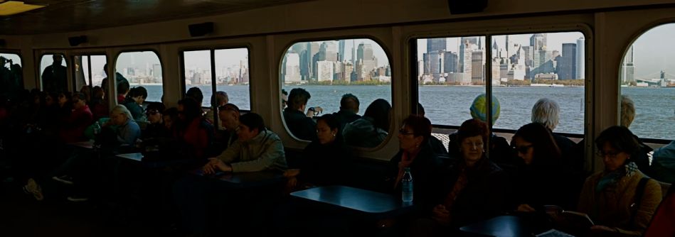 I had already underexposed the shot somewhat to emphasize the skyline, but the picture still contained too many distracting features on the faces of the passengers. I adjusted the exposure even more and saturated the color to further create the look of a low-light, slow film stock. Their particulars muted, my tourists now replicated the “look” of all those earlier arrivals, the ones I had inherited from other people’s experiences. Had I reached a kind of communion with those millions? Could I be adding my own story to theirs?