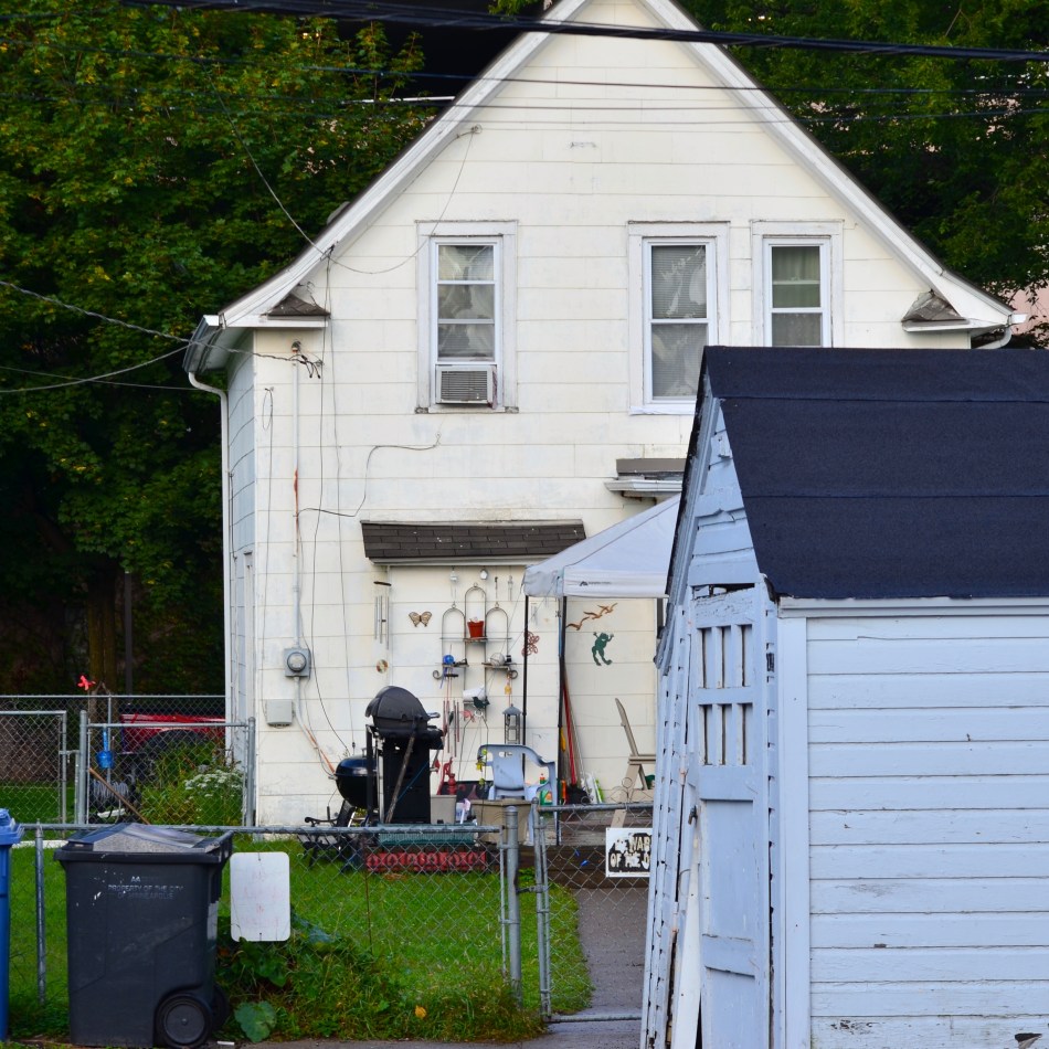 Indeed, it’s how the infinitely adaptable human retrofits his house from the inside out that makes it look like somebody actually lives there, rather like a window looks more window-ish once someone hangs drapes in it. Urban living is littered with enclosures that will, sadly, never look like anyone’s domicile, and it’s only the personal things that spill outward from within that give them any visual identity or distinction at all. Thus, when I’m walking through a neighborhood, I pay less attention to the well-tailored or manicured houses and more attention to the littered ones, the ones where things are randomly hung or hammered into place, the houses where makeshift repairs or ill-performed additions are in evidence. Houses that otherwise seem as if they were extruded from a Play-Doh Fun Factory can become personalized by what is strewn in front of them, left in the yard, tacked on as a footnote. It is that randomness, that refusal to conform, that makes houses human, and thus ripe for picture-making.