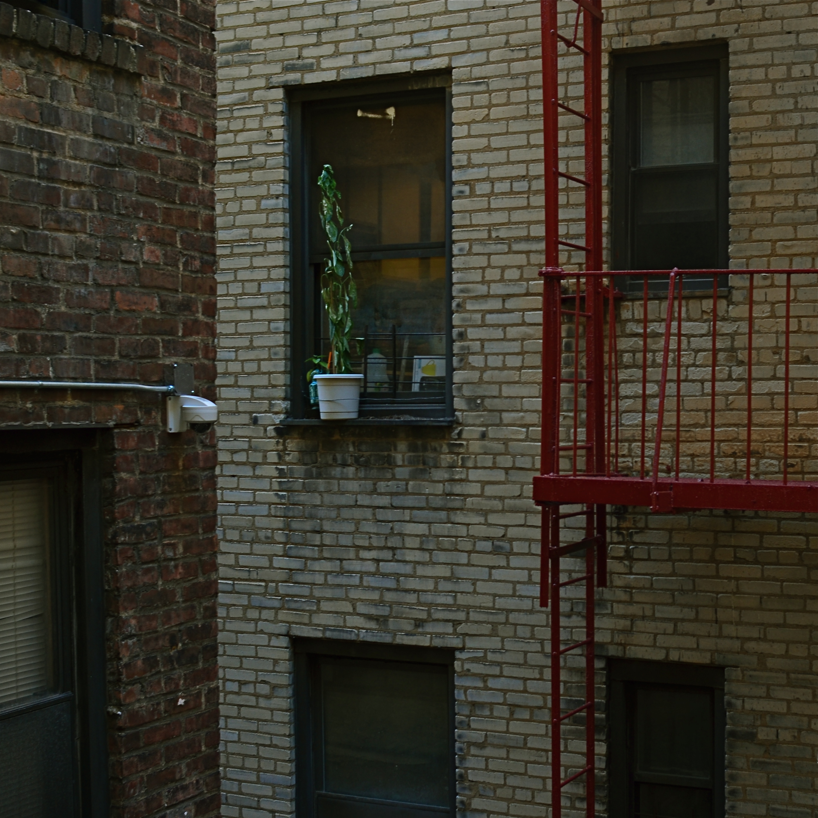 When I see a picture of something that, to me, symbolizes our collective refusal to knuckle under, I want to take it home with me. Because we need it. Now, yesterday, ever. We draw strength from that escapist wildflower, or a battered face upturned toward the light, or, as above, a potted plant defying the odds in a dark apartment air shaft. Someone decided to give that plant a chance…or, at least, to remind the grey walls and grimy brick that color and life are still around, still fighting for their shot.