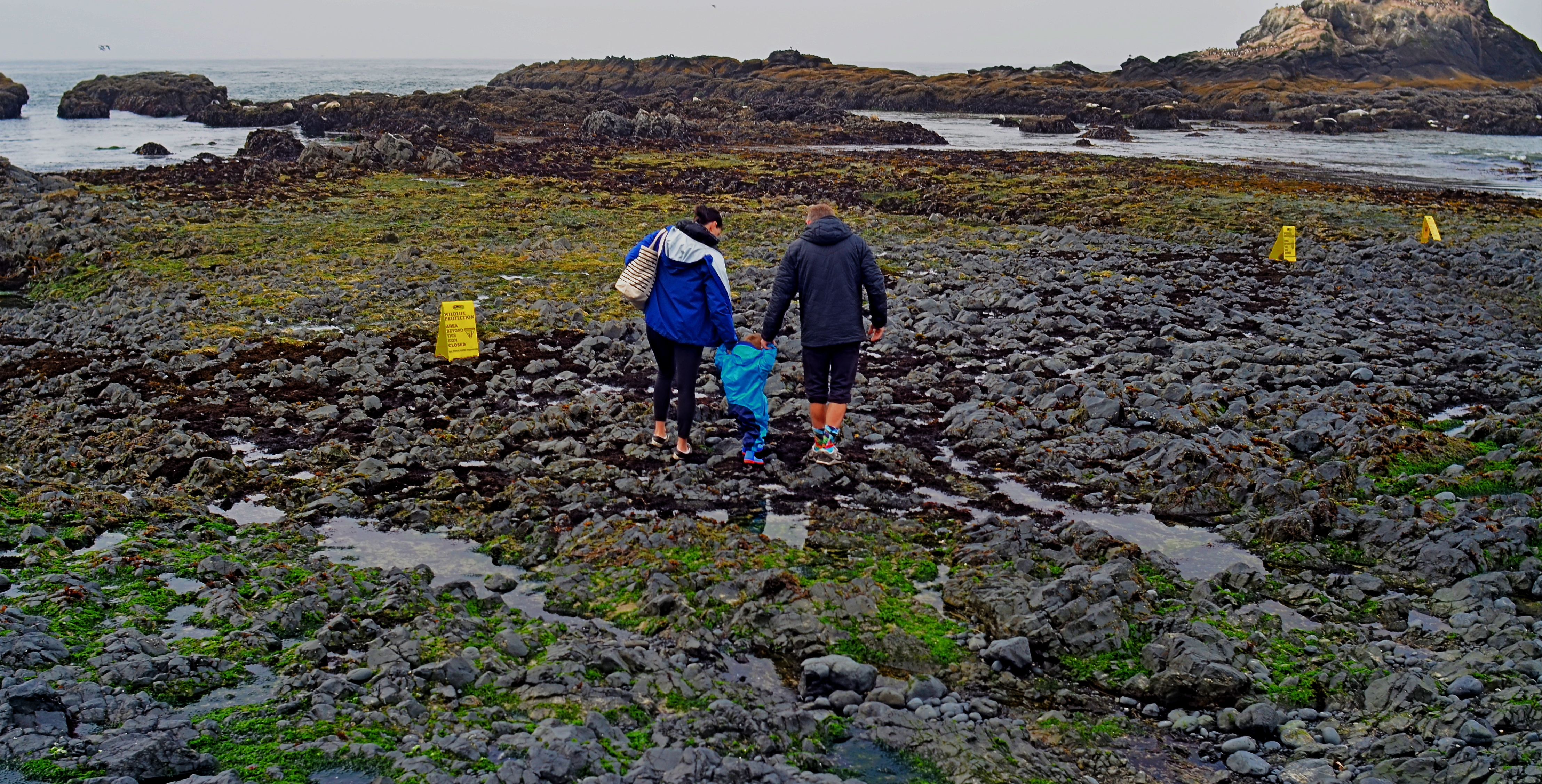First and easiest is the choice of a 24mm lens. This optic qualifies as an “ultra-wide” and will always exaggerate the distance from front to back. Then there’s the detailed texture of rock and sand, whose particles shrink in size as the tide pool recedes toward the sea, and just as our mind knows it would in nature. As to focus, setting at infinity helps the eye look deeper into the shot, whereas just shooting only the family in sharpness might stop the audience at a shallower viewing point. Finally, the placing of the family at center and at the mid-point of the front-to-back distance means you have to “look into” the shot fairly deeply just to engage them, at which point your brain has already been dragged halfway to the rear of the shot.