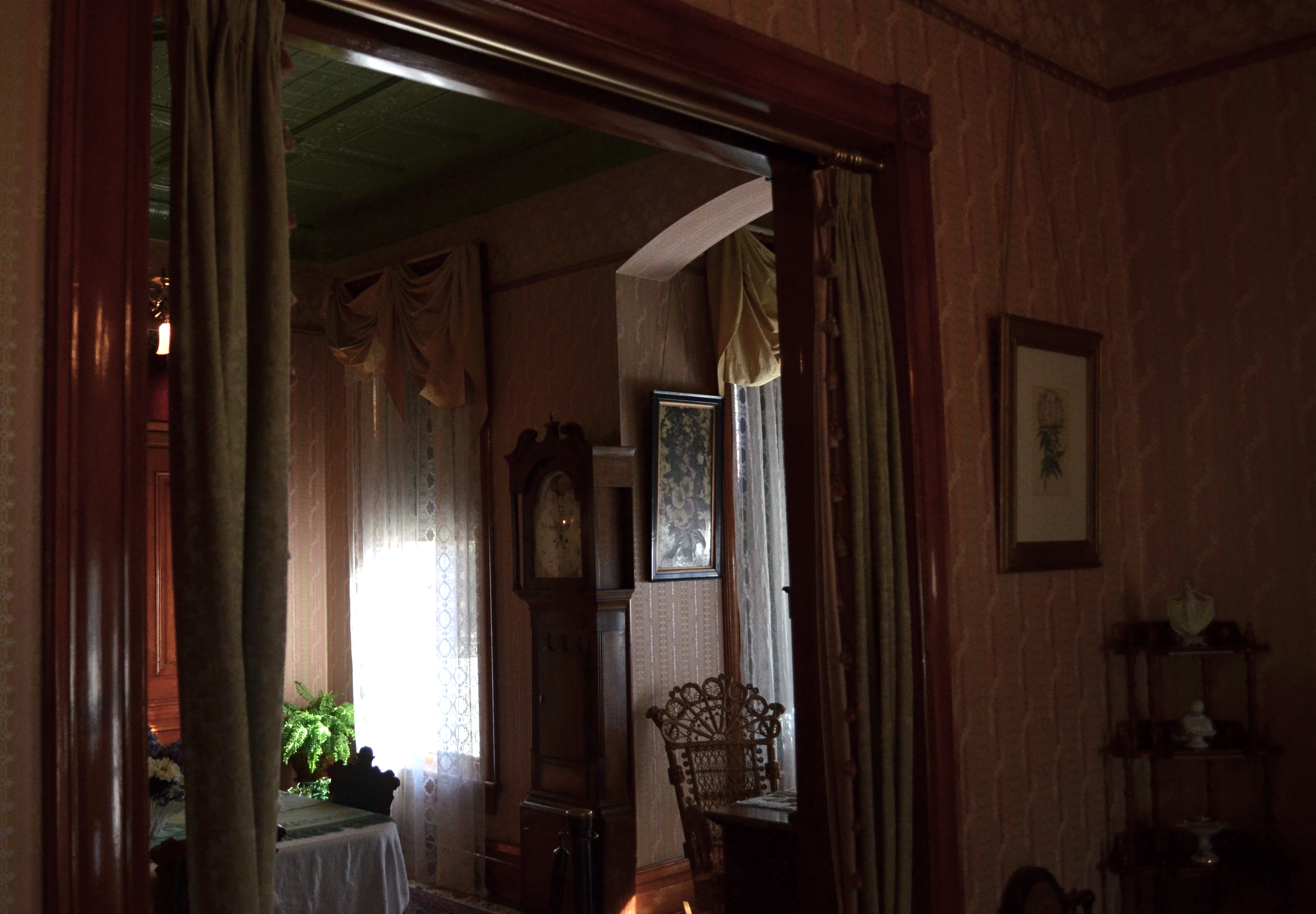 One crucial thing to be mindful of is that 90% of the light you get on old house tours will be window light. Highlights will almost certainly be blown out on things like sheer drapes, but you need all the light you can get, since it’s a cinch that flash will be prohibited and the interior wood trims, floors and furnishings will likely be very dark in themselves, acting as light blotters. Learn to live with the extreme contrasts and resulting shadowy areas. Expose for the most important elements in a room. You cannot show everything to perfect advantage. In some interior rooms in older homes, you don’t have a shot at all, unless you ditch the rest of the tour group and have about twenty minutes to yourself to set things up. Unlikely.