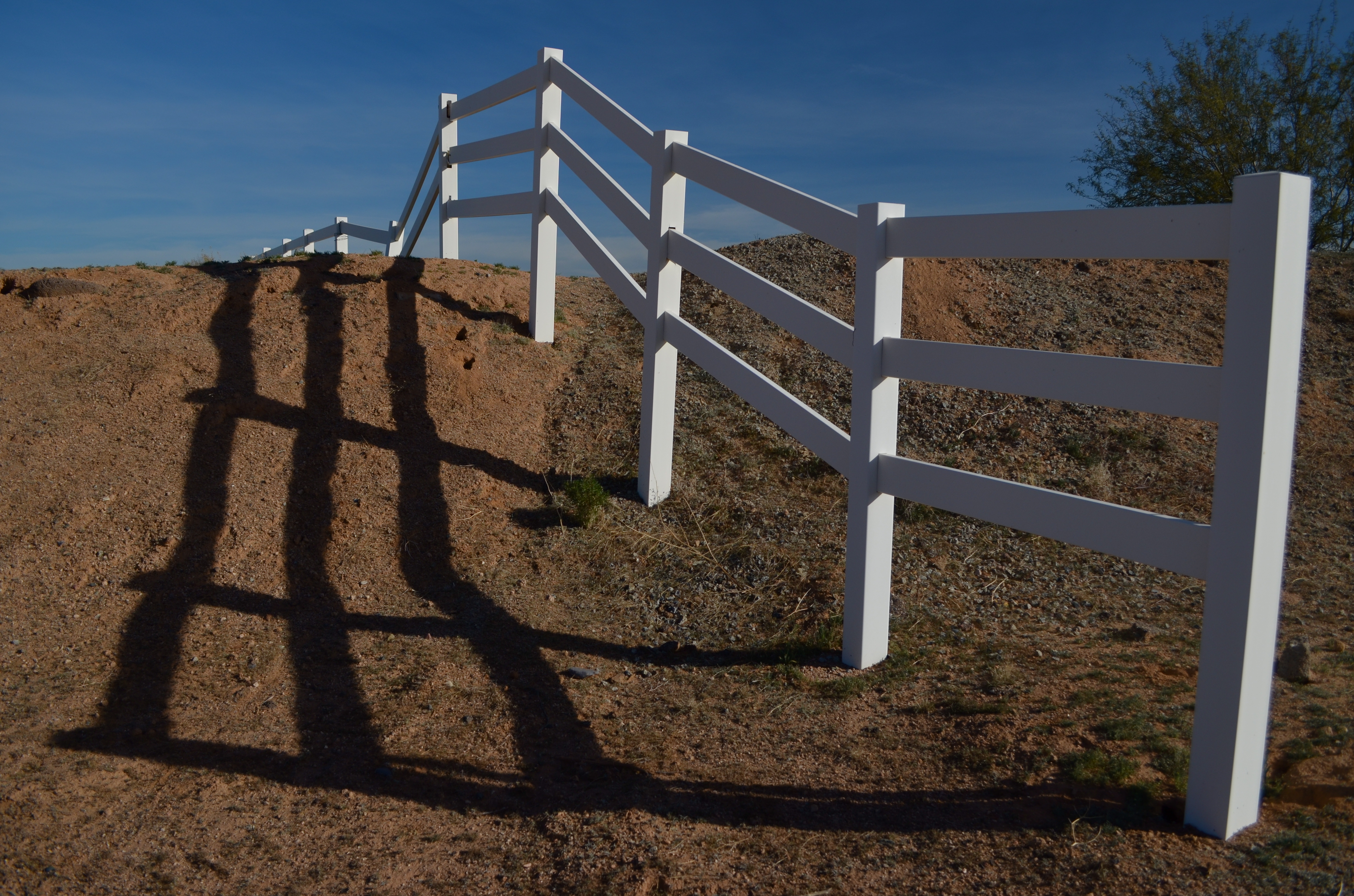 The vanishing upward arc and sinuous mid-morning shadows of this bit of rural fencing has been needling me for weeks, but its one optimal daily balance of light and shadow was so brief that, after first seeing the effect in its perfection, I drove past the scene another half dozen times when everything was too bright, too soft, too dim, too harsh, etc., etc. There was always a rational reason to drive on.