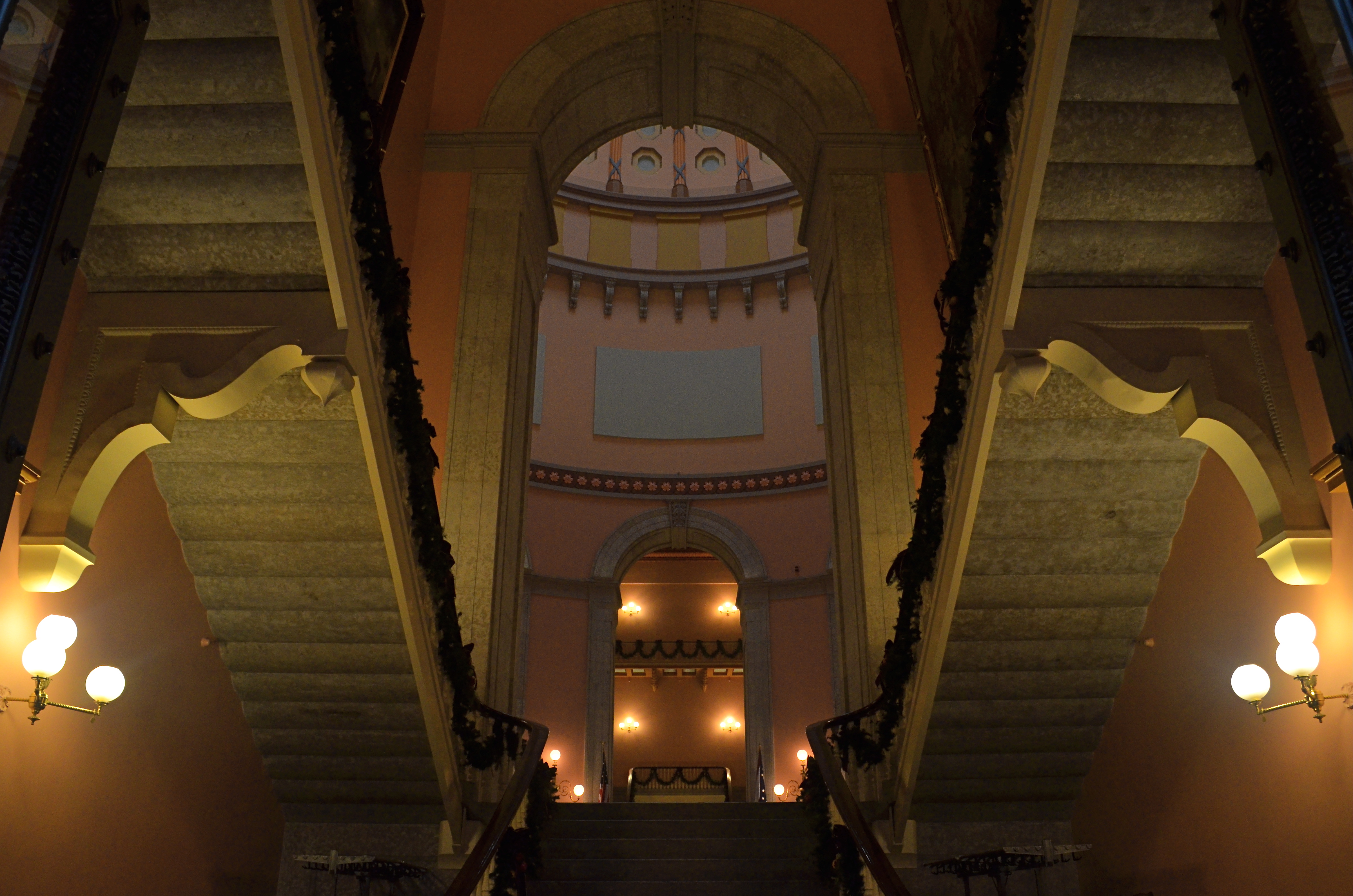 Uplighting creates a moody frame-within-frame feel at the Ohio Statehouse building, in a shot inspired by Edward Steichen’s images of massive arches. 1/30 sec., f/8, ISO 800, 18mm.