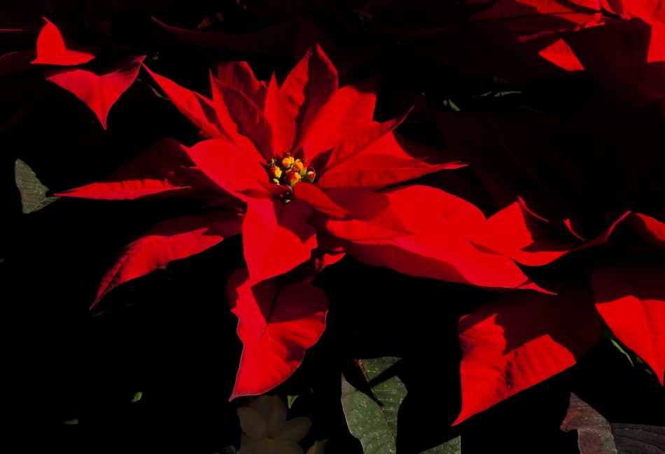 The fun thing about exposure is that there are several ways to get there, and so, if you can’t stop your iris down far enough to suit yourself, you can always ramp up your shutter speed, which is what I’ve done here. In a typical shot, the poinsettia would have been backed by more leaves, the edge of a pot, foil wrapping and other clutter, but at the P900’s smallest aperture, f/8, and a shutter speed of 1/500 in early morning light, the red leaves become the exclusive star. Early direct light in Phoenix, Arizona would also have generated a complete blowout of any texture or detail in the structure of the leaves, and, while much of them remain hot in this shot, some vein detail is suggested here, especially when the edge of a leaf falls off into blackness. The result is a genuine fake of 64 ASA Kodachrome, achieved largely by accident in my youth, now purposely chosen in my….dotage.