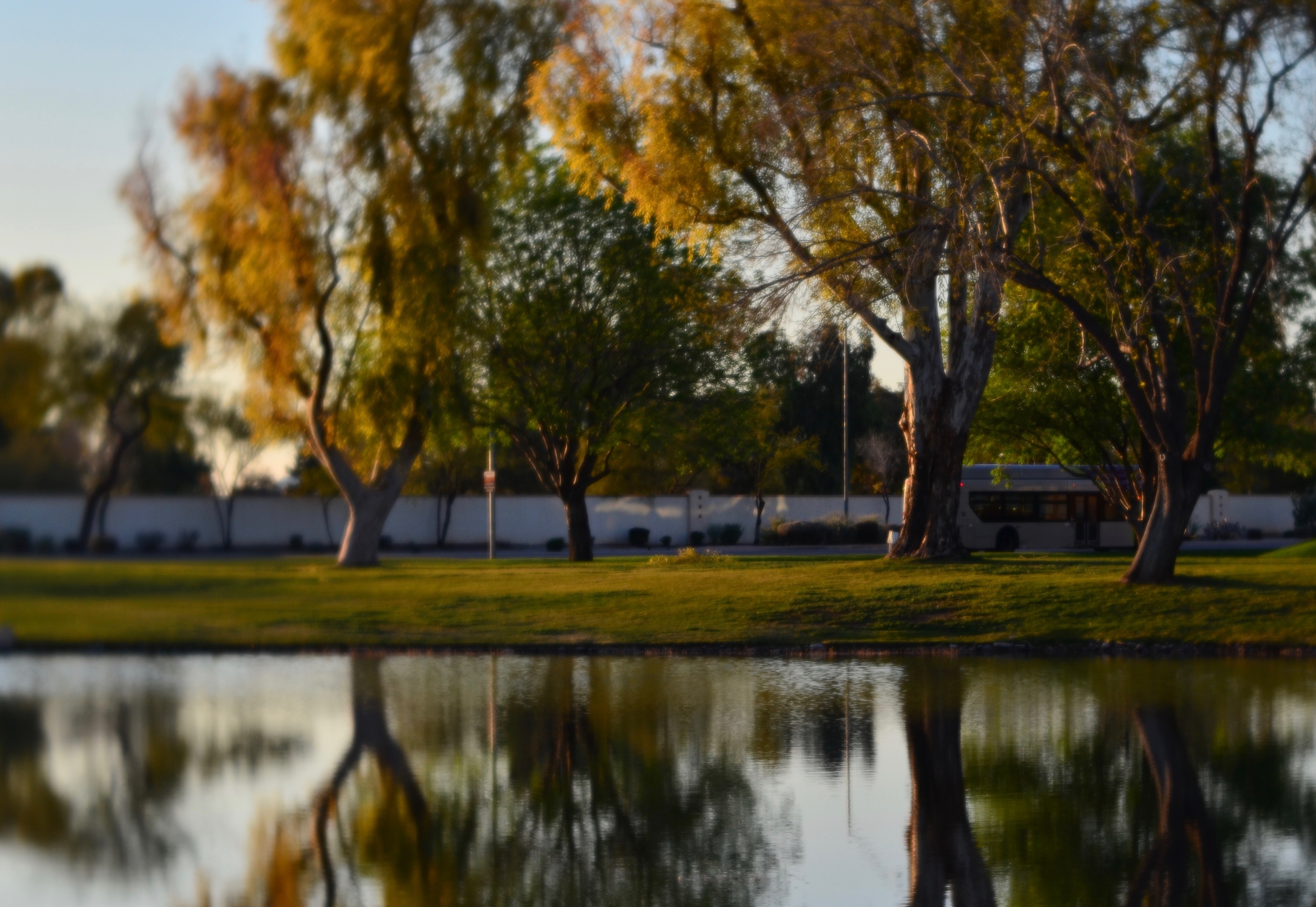 The frame you see here is #18 out of twenty shots taken toward a busy suburban road as seen from a roadside pond. The surface of this small lagoon is usually filled with concentric ripples from a centrally located fountain which is nearly always turned on, so in many cases, I could not dream of the reflections seen here. That idea alone was enough to make me pull off the road and park. Several of my first tries were framing disasters; a couple of others were taken from an opposite angle and contained too much clutter: and then there was this one, which was preceded by several in which the road was just crammed with late afternoon traffic. Frustration was mounting. I wasn’t getting what I wanted. Indeed I wasn’t sure I even knew what I was going for.
