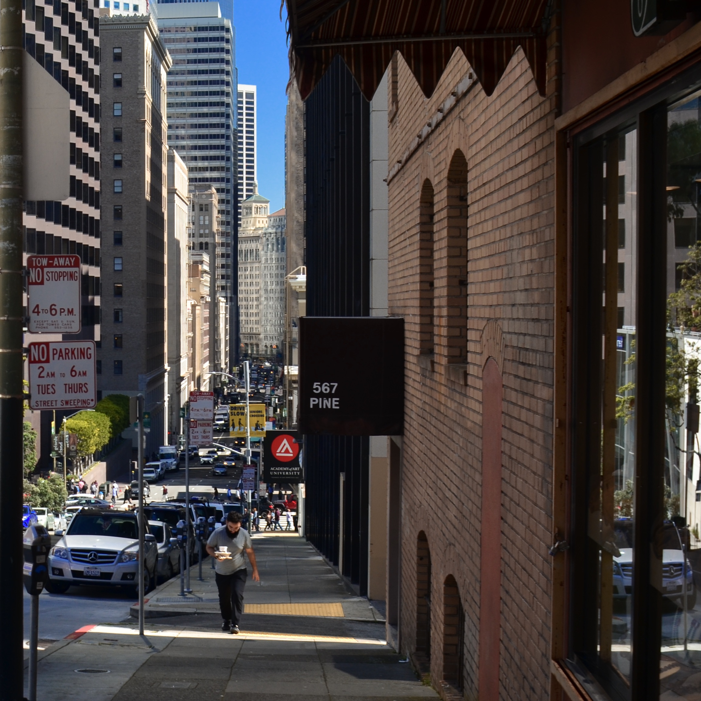 And, yes, I know how astoundingly easy it is to reframe an image as a square in a gazillion common post-processing platforms. That’s not the point. There are times when the ability to concretely see (rather than imagine) a composition within a square can lead to a superior image. If I modify a rectangular picture to capitalize on the “inner square” of strong impact within the frame, I’m really retrofitting a picture that worked out less than well when I shot it. To compose and shoot in a square, I have to be constantly mindful of how space is placed and balanced…that is, I have to be doing nearly everything on purpose, based on what’s in front of me at the moment. That is not the same thing as salvaging a usable square from within a composition that I originally planned in a completely different way. The image you see at left was shot in a particularly narrow side street in San Francisco and was originally rectangular. In editing, I immediately saw that its main power was in a square extracted from its center, but had I been doing the master shot as a square, my intent for it would have been measurably different. Different by mere Inches, maybe, but different.