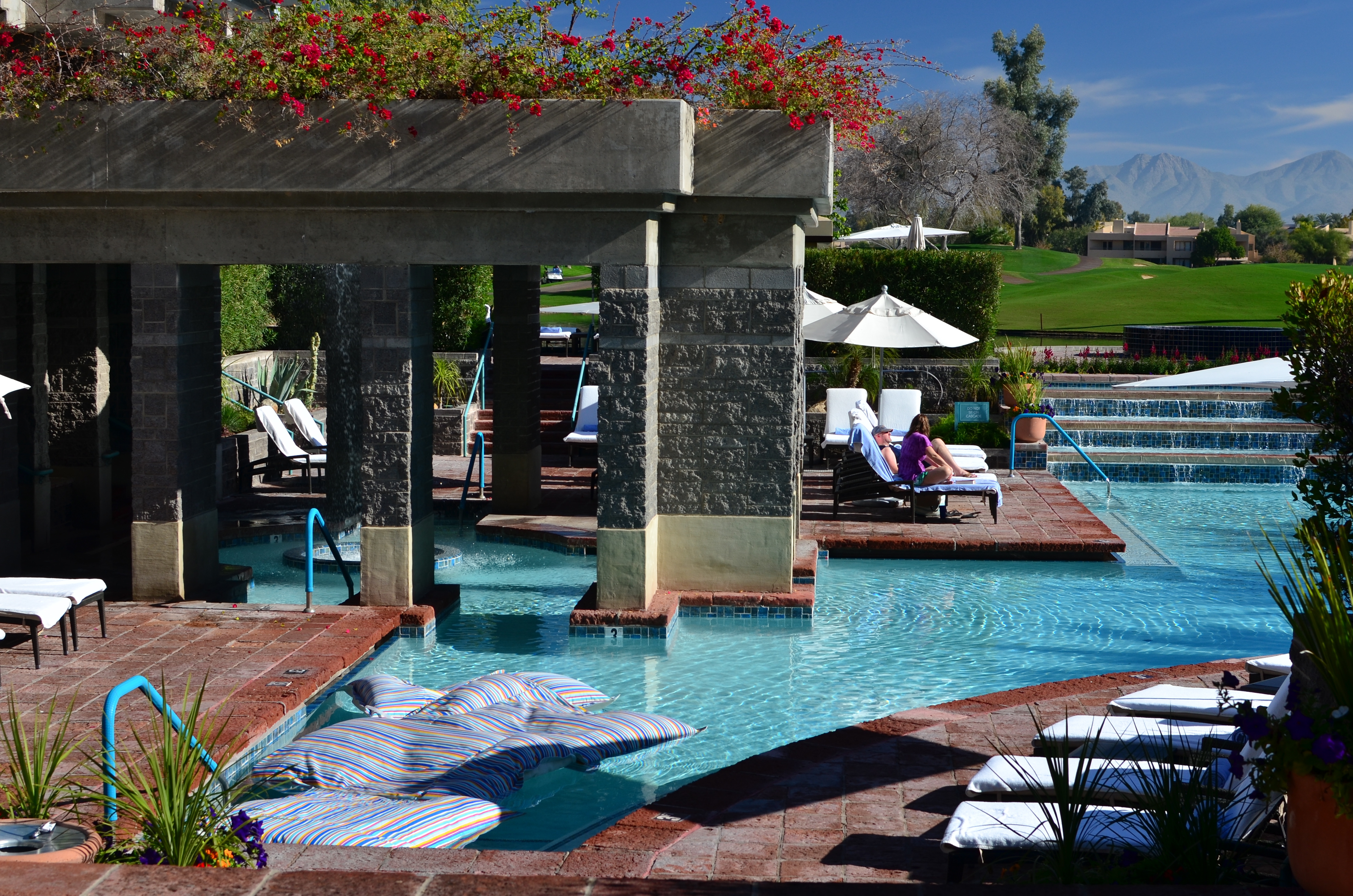 I recently began driving to various mega-resorts in the Phoenix, Arizona area to capture scenes in either early morning or late afternoon. Some are grand in their ambition, and more than a few are plain over-the-top vulgar, but sometimes I find that just working with the buildings and landscaping as a designer might have originally imagined them can be surprising. Taking places which were meant to accommodate large gatherings of people, then extracting said people, forces the eye to align itself with the original designer’s idea without compromise. Try it, and you may also find that coming early or staying late at a public area gives you a different photographic perspective on a site. At any rate, it’s another exercise in re-seeing, or forcing yourself to visualize a familiar thing eccentrically.