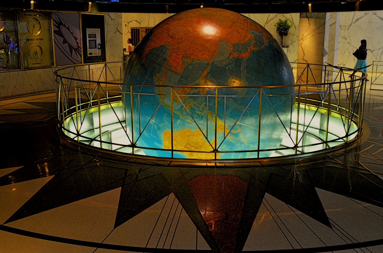 Inside the lobby of the News‘ building at 220 East 42nd Street, the message was a little more mellow, with its enormous illuminated world globe emitting a vibe of stability, science, order, reliability. Today, with the paper long since having emigrated to 4 New York Plaza, the globe, now protected (as is its host building) by city landmark status, still revolves, quietly glowing like the ember of a world that once burned as bright as a comet.