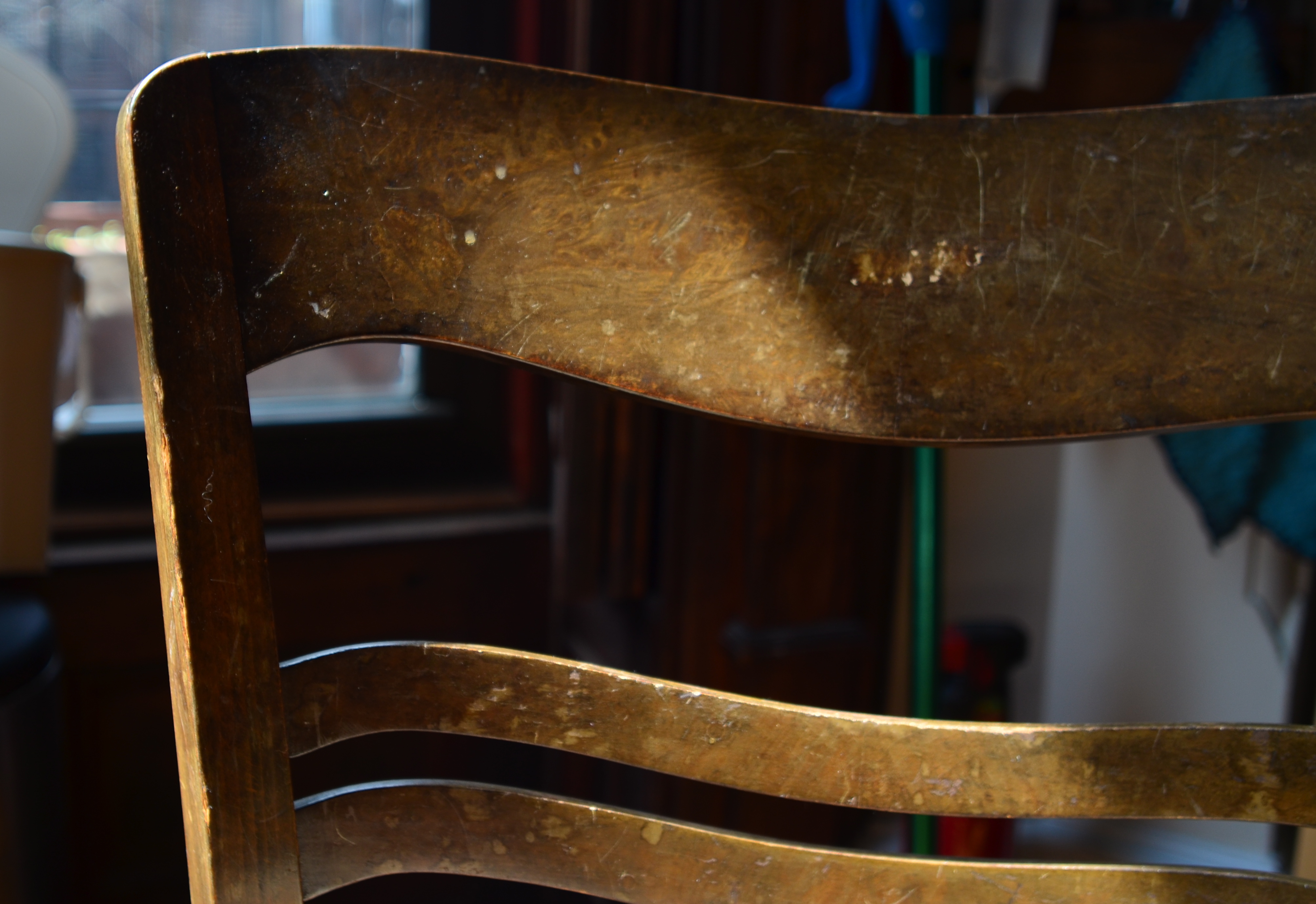 At first, I thought the entire kitchen could sell the idea of the worn, battered chair. Then I found myself looking at the sink, the floor, the window, and…oh, yeah, the chair. Less than riveting. So I re-framed for just the top half of the chair, but my eye was still wandering out the window, and there still wasn’t enough visible testimony to the 30,000 meals that the chair had presided over. So I came in tighter, tight enough to read the scratches and discolorations on just a part of the chair’s back rest. They were eloquent enough, all by themselves, to convey what I wanted, without the rest of the chair or anything else in the room to serve as competition. So, in this example, it took me about five trial frames to teach myself where the picture was.