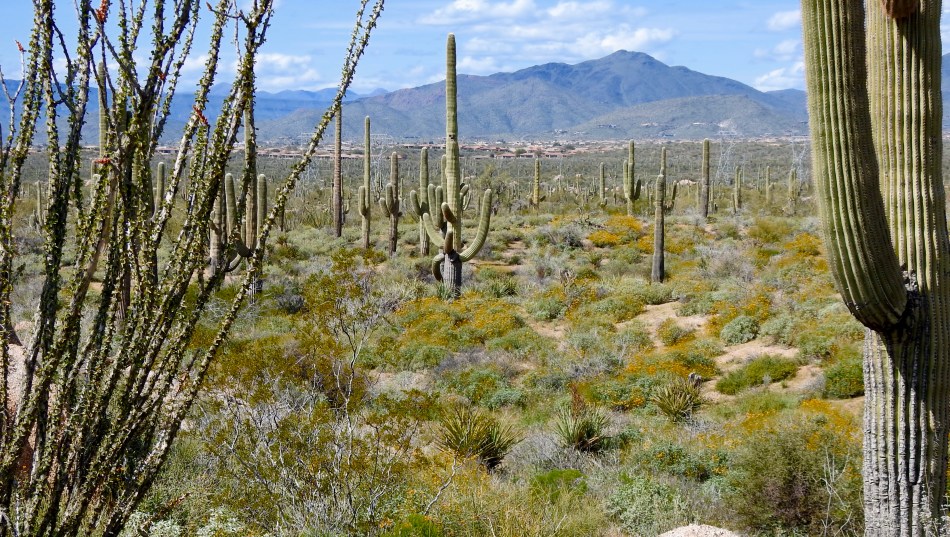 But during late April and early May, an extra dimension of magic occurs when the typically blunt arms sprout hundreds of buds, and, in turn, bundles of gorgeous white cactus flowers. The blossoms are short-lived, opening and folding up dead within the space of a single day, but, for the earliest hours of their brief existence, they are life itself, not only to the regular bird crowd but also the seasonal surplus that flies in for breakfast. Between the blooms and the bugs which orbit them (also in search of nectar), it’s a smorgasbord.