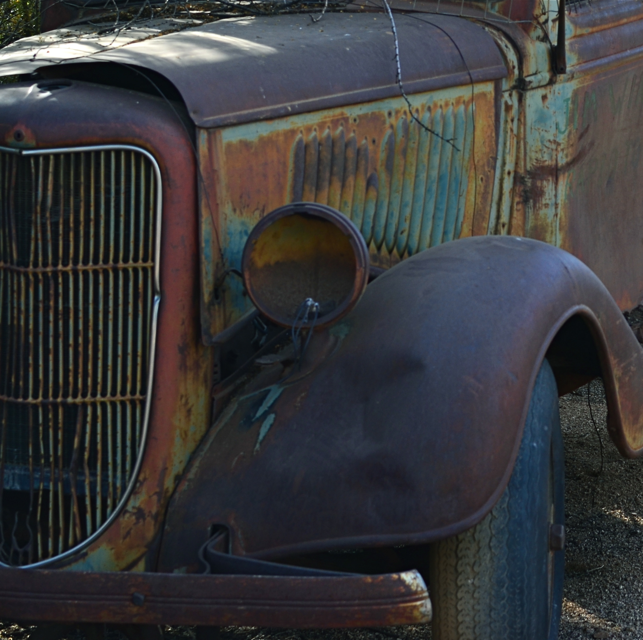 The image up top began with the truck occupying just part of what I hoped would be a balanced composition, showing it in the context of a western desert scene. Only the truck is far more interesting a subject than anything else in the image, so I cropped until the it filled the entire frame. Even then, the grille of the truck was worthy of more attention than the complete vehicle, so I cut the image in half a second time, squaring off the final result and shoving the best part of the subject right up front.
