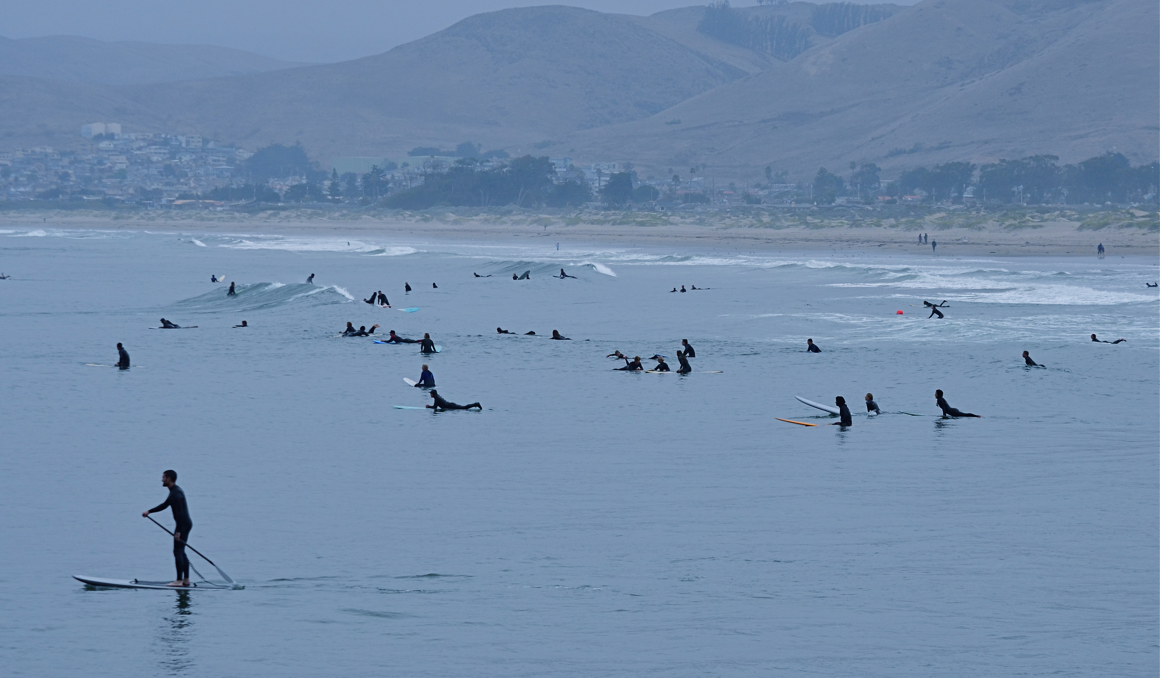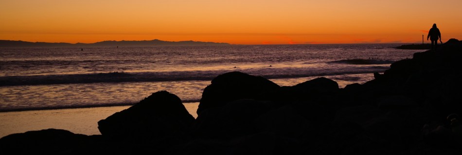 Lizzie and Mark’s stick figures moved every bit as well as my fully-rendered players, but their impact was more immediate. Their drawings didn’t have even a single line that wasn’t absolutely essential to their narratives. I thought of all this recently when working with some distant crowds which were reduced to mere silhouettes in a deep telephoto of the coastline at California’s Morro Bay. As components in a larger composition, they were just markers, measures of linear space. Shooting even closer might have revealed their hair color, lines on their faces or the shine of water on their wet suits, but to what benefit for the overall effectiveness of the picture?