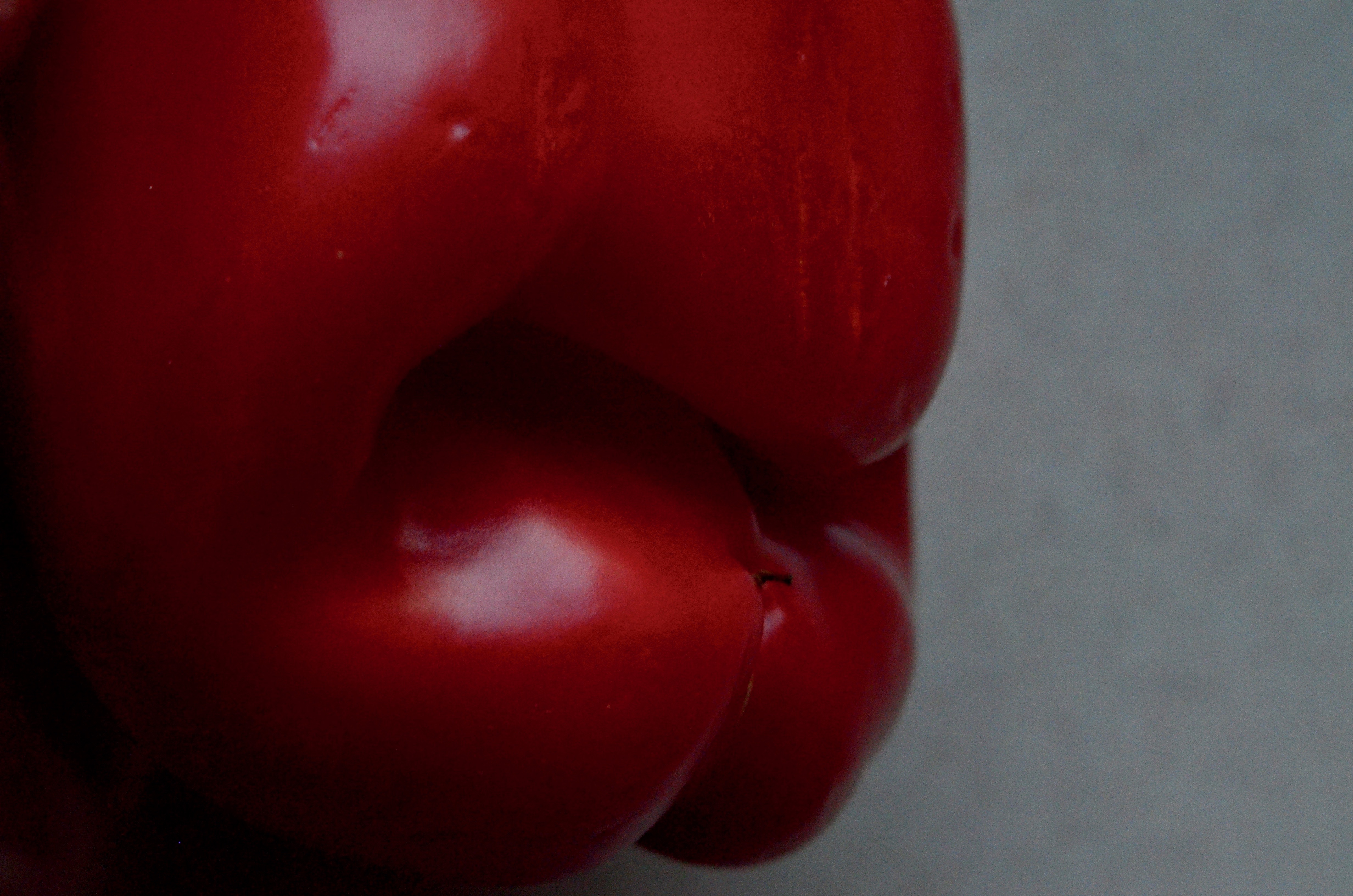 I was reminded recently what a simple revolution can be created by such a minor warping of the visual sense when I unpacked a pepper that I felt could have escaped from Weston’s own garden. The gnarly thing seemed, even before my memory had made a connection back to his work, like a ripe, red set of lips, something between the cartoon kiss of a Jessica Rabbit and the Rolling Stones’ lascivious logo. The curviness of the pepper proved too seductive for me to just start immediately carving it up for salad, so I attached a macro lens and started to take a tour around the thing. At one angle, the vegetable almost looked like a mouth in profile, but with perhaps the faintest suggestion of an overall crimson face as well. The entire exercise took about three minutes, after which the pepper dutifully kept its prior appointment with my homemade balsamic dressing. The one fun takeaway was reminding myself that, no offense to reality, but it’s fancy that makes photographs.