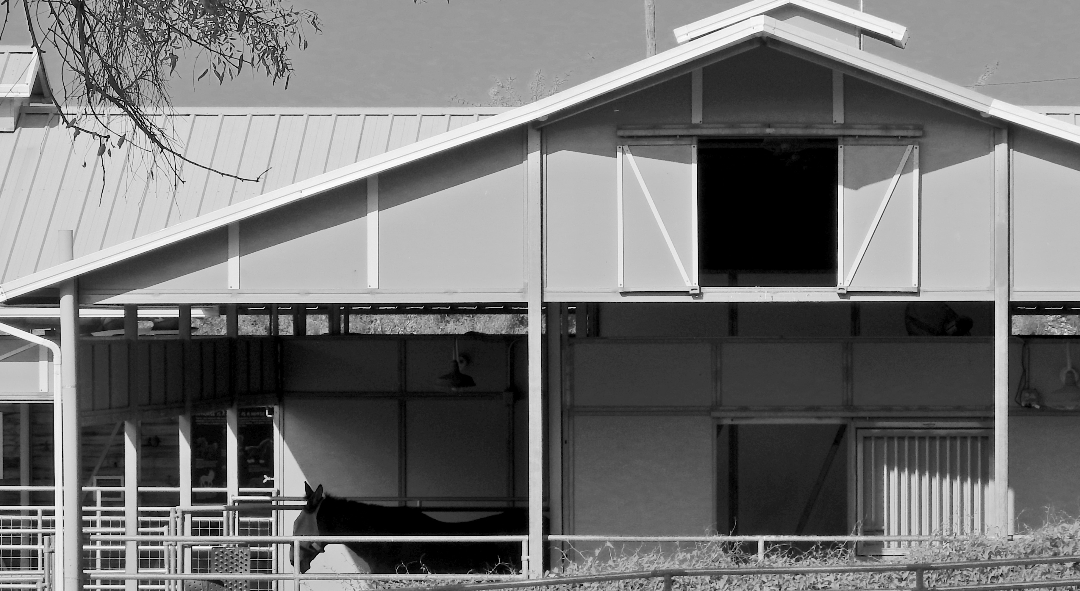 Twenty years ago, this image would have taken up twice the area you see here, because, even today, its master frame included, along with the barn and stable, a side building, some empty blue sky, and a few small piles of farm implements….enough distractive information for five pictures. Zeroing out all the color and cropping to keep the entire picture to a basic series of rectangles and triangles (plus their multiplied shadows) turned out much better; all I had to do was develop the courage to cut, decisively, in search of a less cluttered picture. I only select this example because it’s a very clear illustration of the process that I now go through for composing nearly every shot, in that I try to pre-visualize how little information I need to convey my concept. Yes, how little.