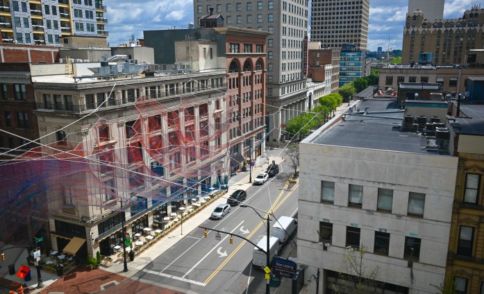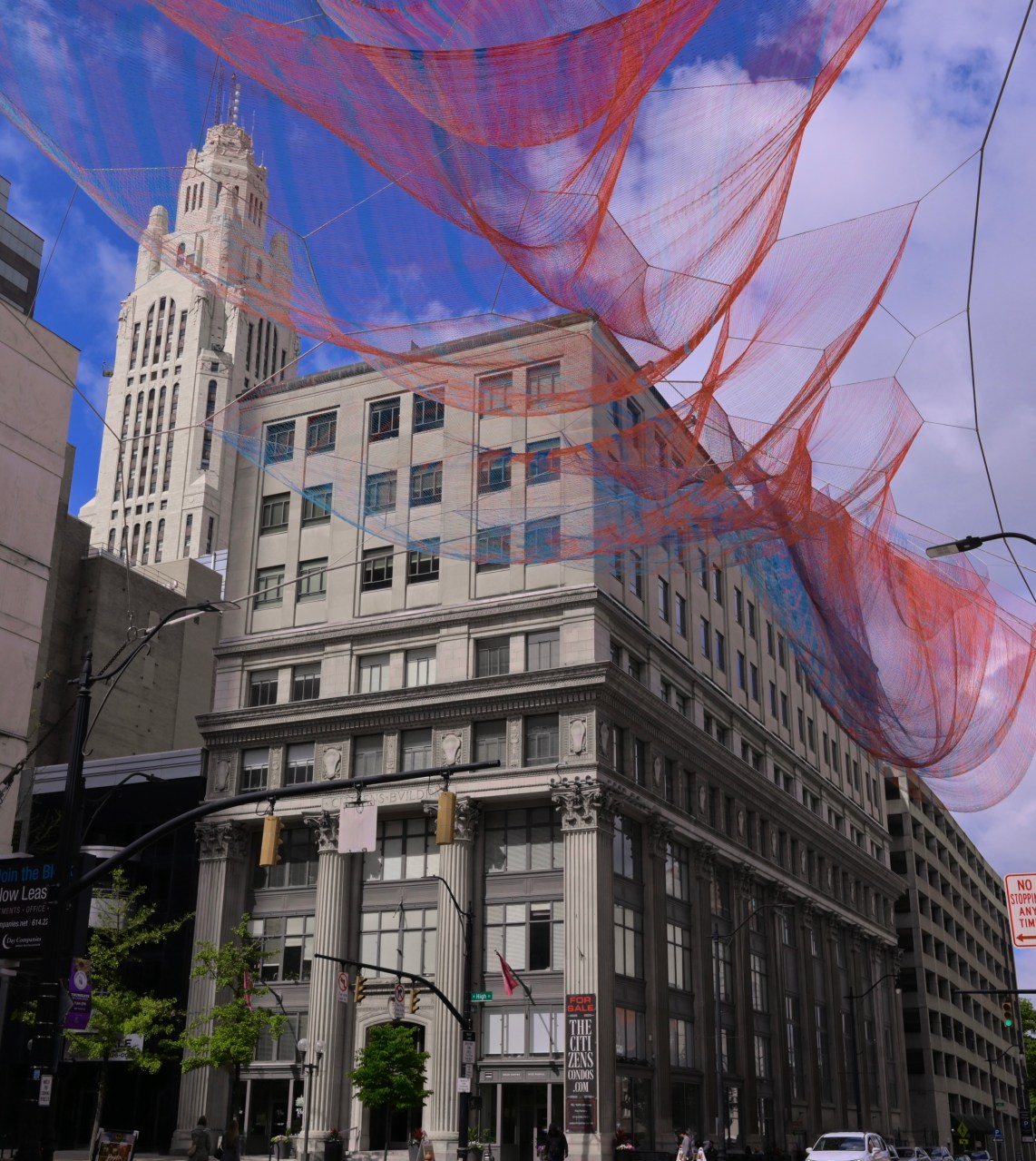 Current, a rope and cord art installation in Columbus, Ohio, created by “fiber artist” Janet Echelman