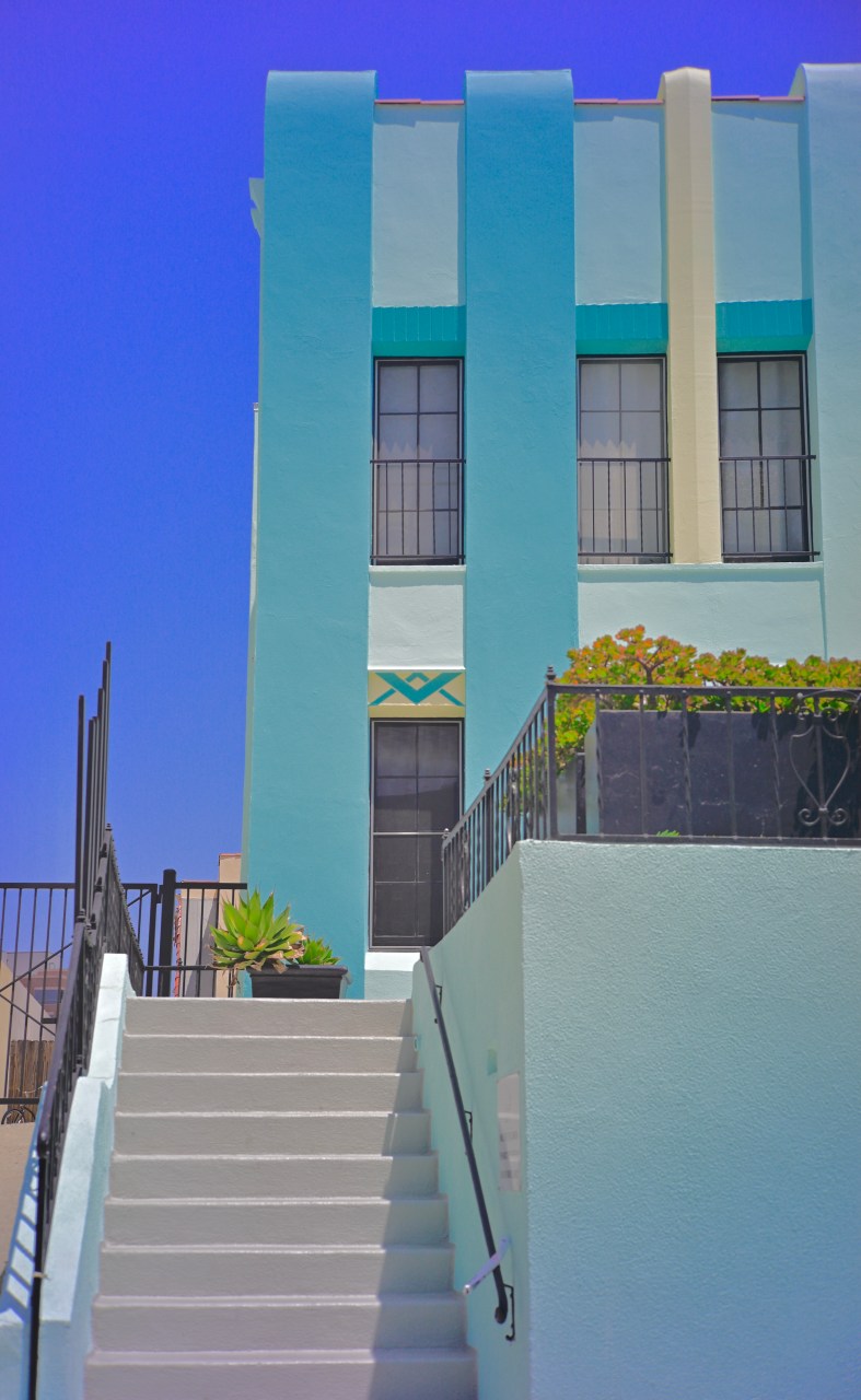 This apartment block is just one street away from the home of a dear friend in central Los Angeles, so I have probably made the short pilgrimage to it for at at least ten years’ worth of visits. Part of its attraction is that it’s one of the only original Art Deco structures left in the neighborhood. Another part of it is the utter simplicity of its design, as is its clean teal tone. I’ve been snapping it for so long now that a complete folder of my collected shots of it could easily serve as a time-line on my own development as a photographer, as I’ve taken a crack at it through every phase, fad and infatuation I’ve endured over those ten years.