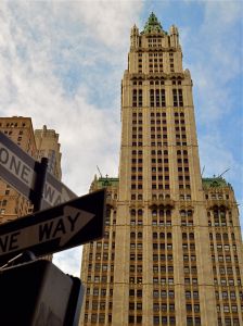 Frank W. Woolworth, whose “five-and-dime” stores defined discount retail for generations, decided, in 1910, to essentially generate his own ludicrously overwrought headstone, which sprung, two years later, to the then-insane height of 792 feet, at 195 Broadway in lower Manhattan, catty-corner from the New York City Hall. Architect Cass Gilbert, whose beaux-arts styling suggested a transplantation of the values of old-world Rome and Greece to the USA, was contracted by Woolworth for the creation of his redolent redoubt, a project that effectively kick-started the first golden age of the American skyscraper and reigned as tallest building in the world for nearly seventeen years. Gilbert’s ongoing homage to classical architecture, seen in such landmarks as the U.S. Supreme Court building, resulted in a structure that resembled a gothic cathedral, minus the pesky God parts.