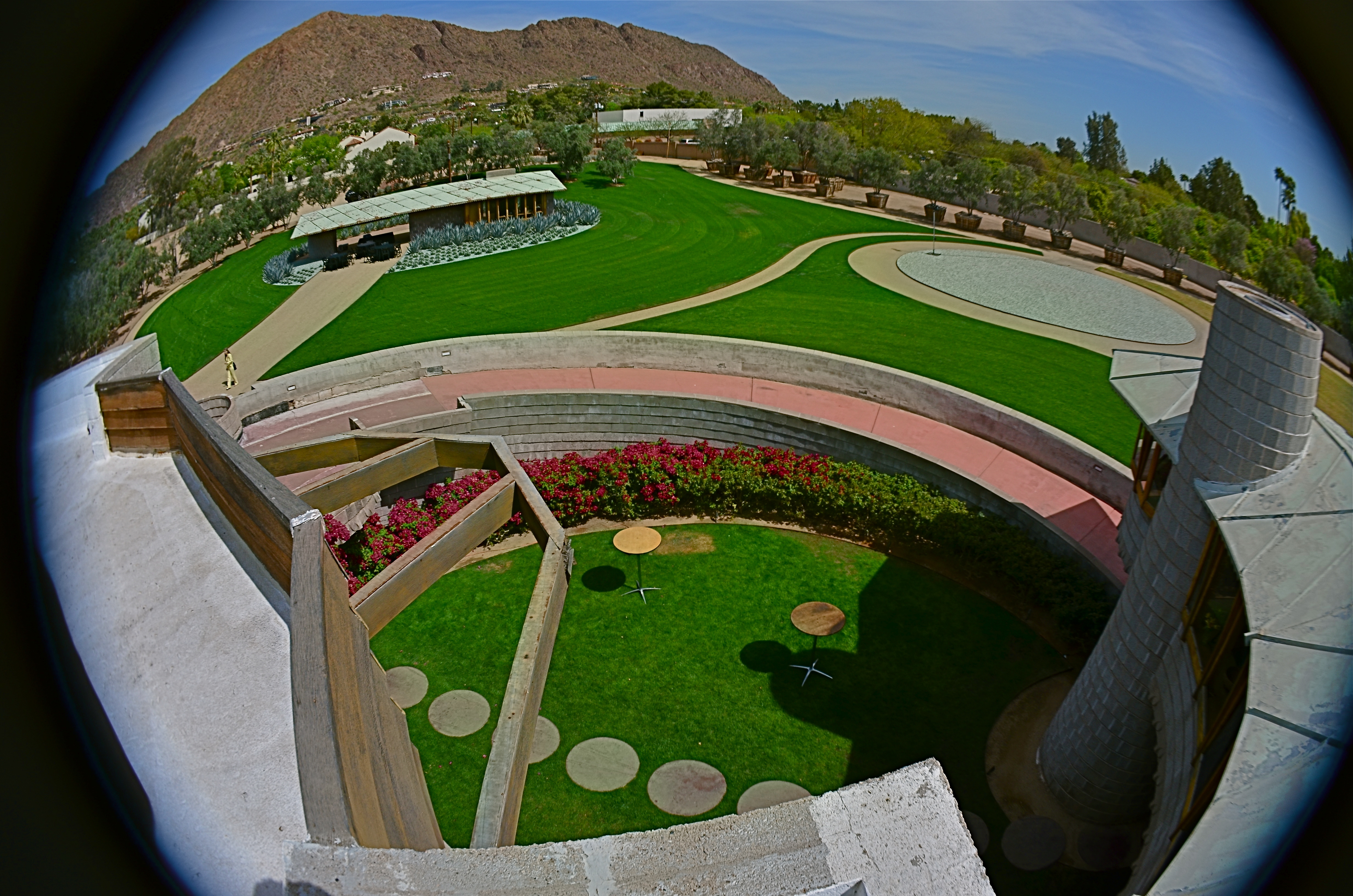 Several years ago, when the fate of the last residential design by Frank Lloyd Wright in Phoenix, Arizona was decidedly uncertain, I had the chance to work briefly as a tour guide on the grounds of a dwelling that some regard as a dress rehearsal for the Old Man’s final masterpiece, New York’s Guggenheim Museum. The David and Gladys Wright House had passed, over the years, to parties that intended to raze the structure for “development”, at which time a local millionaire purchased the house just to protect it. Preservation and restoration being extremely expensive (if needful), he explored plans to convert the house into a learning center/museum, trying to partner with Arizona State University and others to get the project off the ground. Locals from the neighborhood, fearing that their property values would be undone by artsy invaders, freaked. Somewhere in that mad timeline of contention, the house was opened to the public in an effort to sway opinion. Not in my backyard, saith the locals.