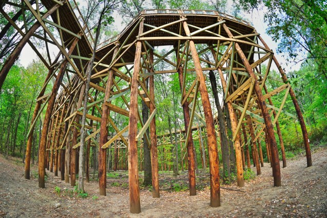 In recently shooting the “Canopy Walk”, a new treetop-height attraction in Reynoldsburg, Ohio’s Blacklick Woods Metro Park, I found myself confounded by the rangy, twisty contours of the platform. None of my standard lenses seemed able to corral the thing into a single frame, and, after several attempts to tell its story in that fashion, I switched gear completely and opted for an approach I can only call cubist.