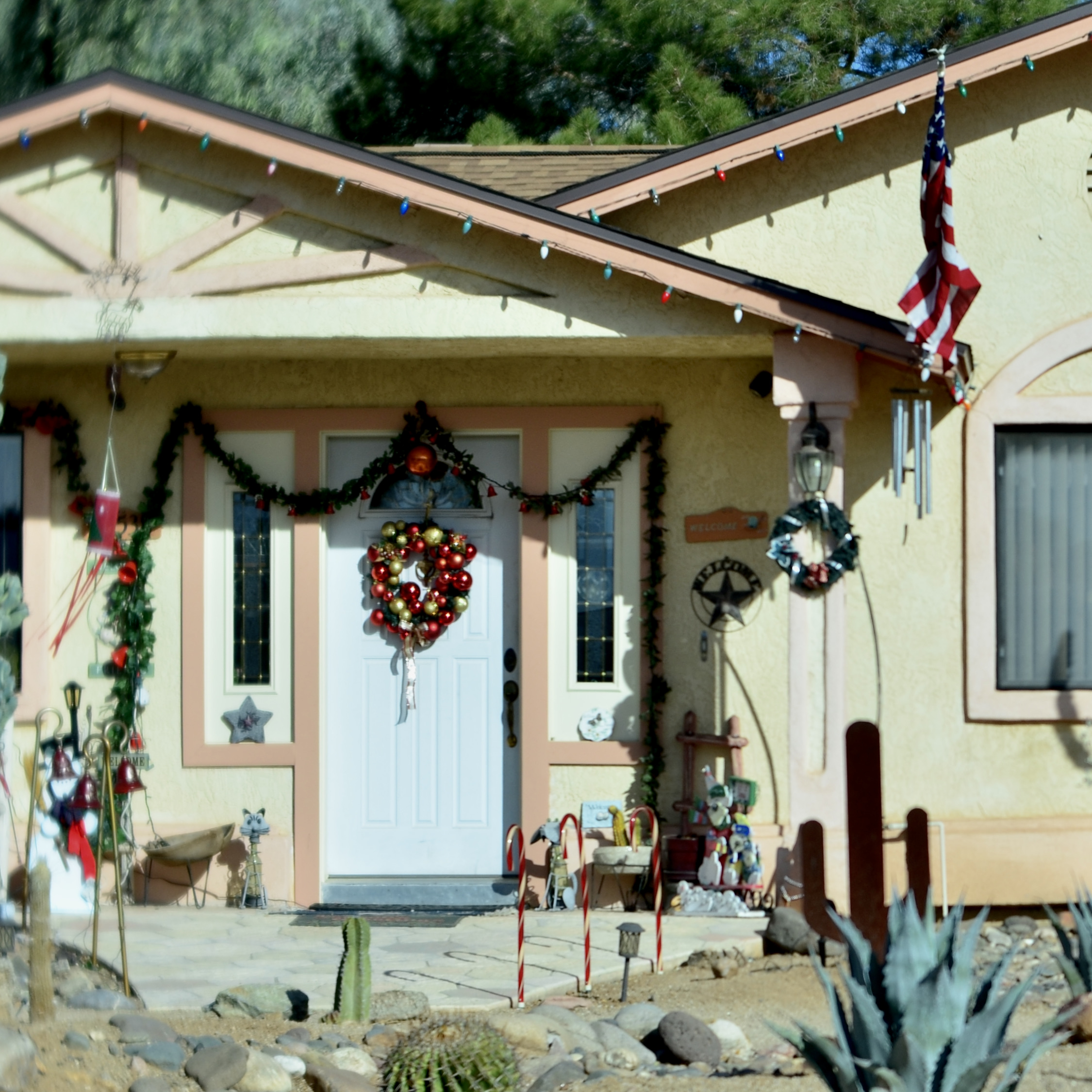 Take the simple idea of the front entrances to our homes. During the holidays, we decorate them to amplify the concept of home, safety. And yet, this year, the welcoming message is a hollow one. The front door is not so much an invitation as the final barrier between the outside world and the people within, who must, for this time, barricade themselves behind it. The bells, balls, tinsel and lights say, “Come on in” even as our wiser minds tell us to say “Stay away.” The third-degree burn of this irony has made me reduce my usual wide tide of seasonal shots to almost exclusively focus on front doors. The warmth they project remains visually unchanged from that of years past. It’s our own emotional context that makes us feel the pictures differently. They are images of conditional welcomes, as the entire holiday season, as it must, becomes one big exercise in delayed gratification.