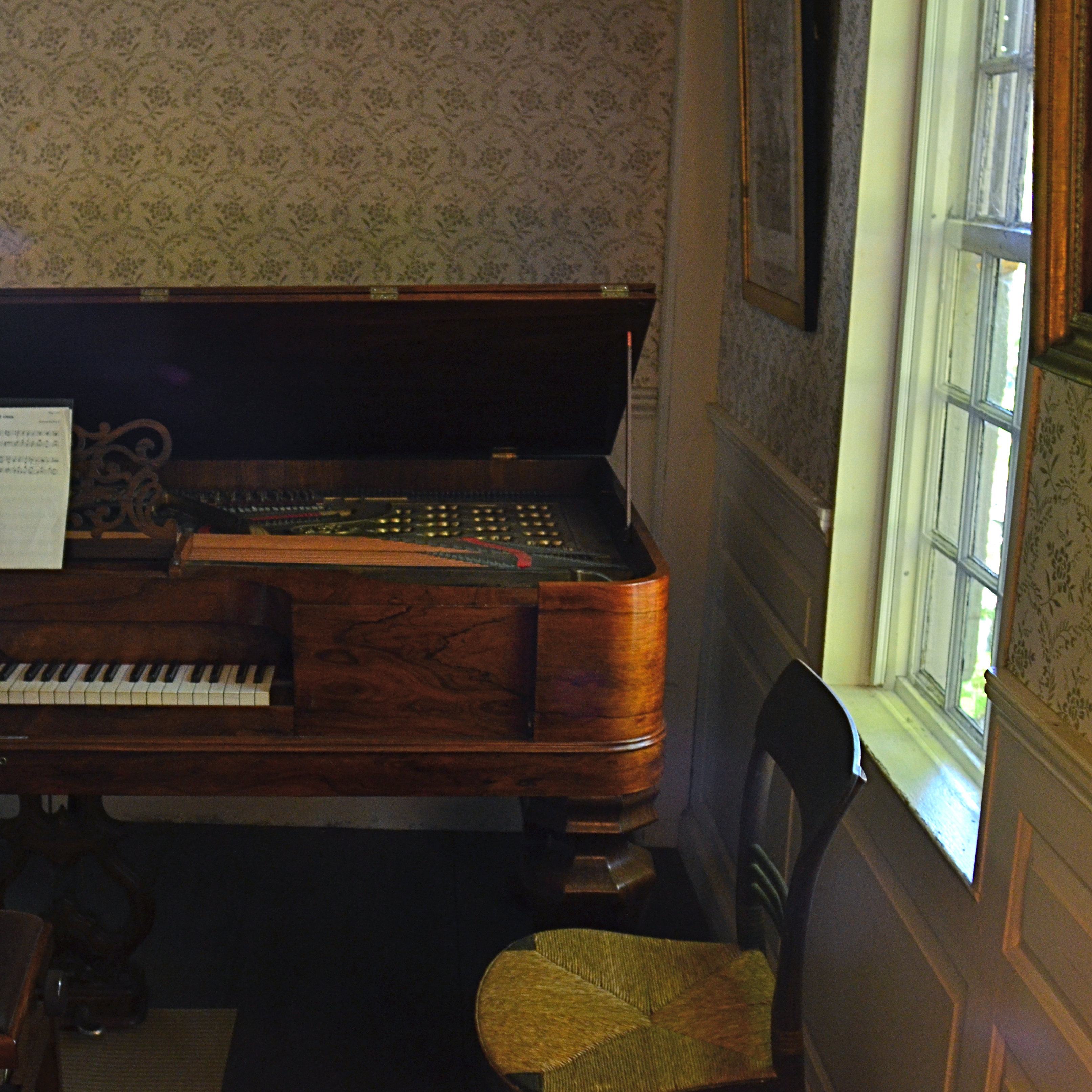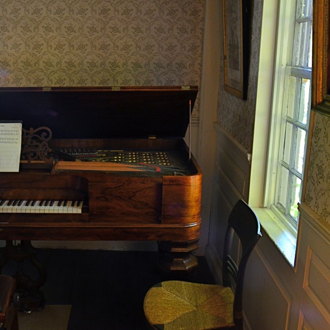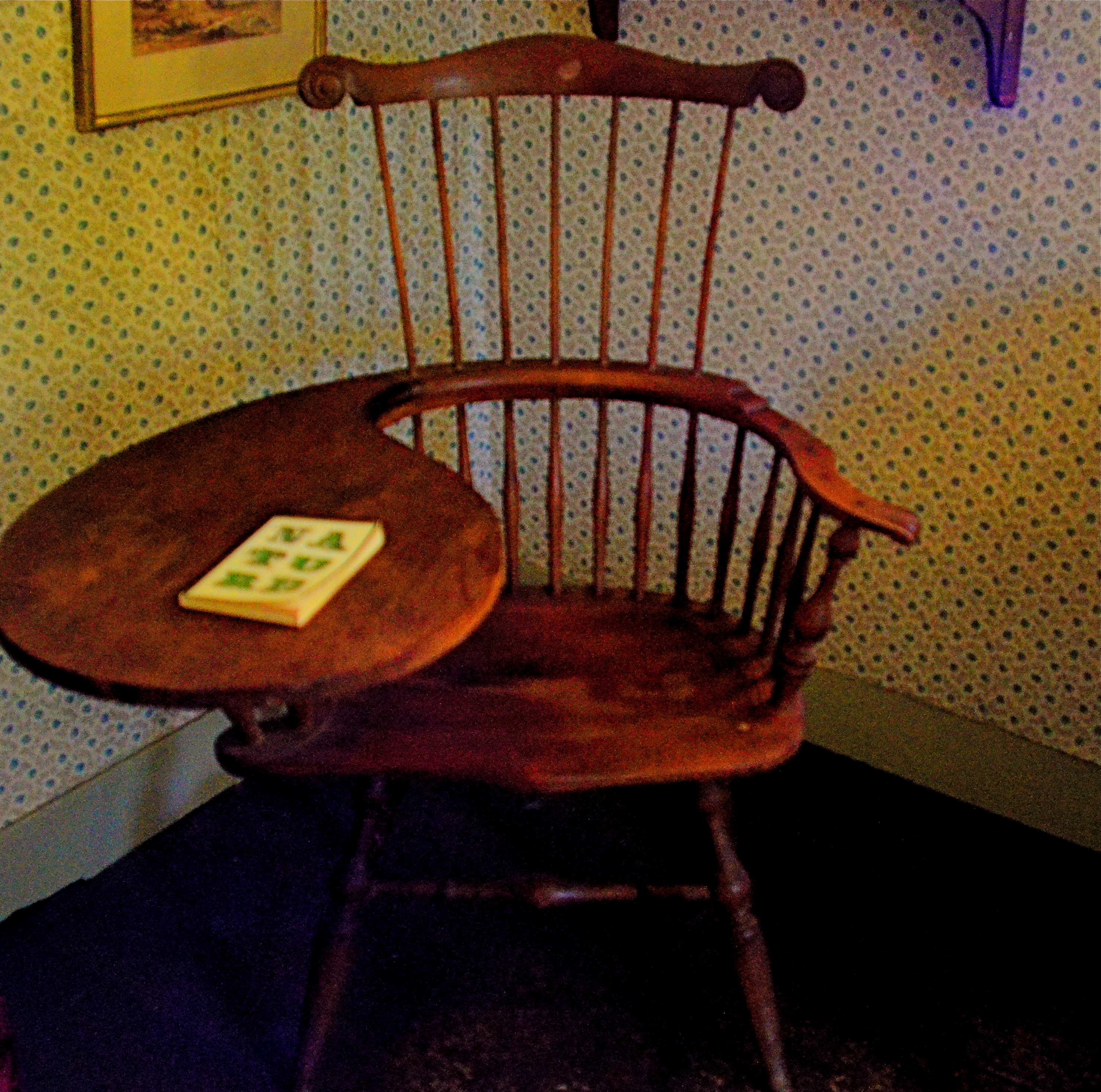 The house is lit only with indirect window light during the day, but with a fast prime lens and a decent eye, there’s more than enough soft illumination to work with to produce decent results (see left). In fact, just before my tour was to head into the room containing the desk, I had already harvested quite a few usable shots…so many, in fact, that I was getting teased by the others in the group…the usual “oh, another picture?” stuff. Uncharacteristically, I began to worry about whether I was holding everyone else up, and thus started to hurry myself, to shoot not as I intended, but in deference to what I thought others would like. By the time I got to Emerson’s chair, the light, my lens, even my own experience were all useless to me….because I wasn’t ready to shoot….but did anyway.