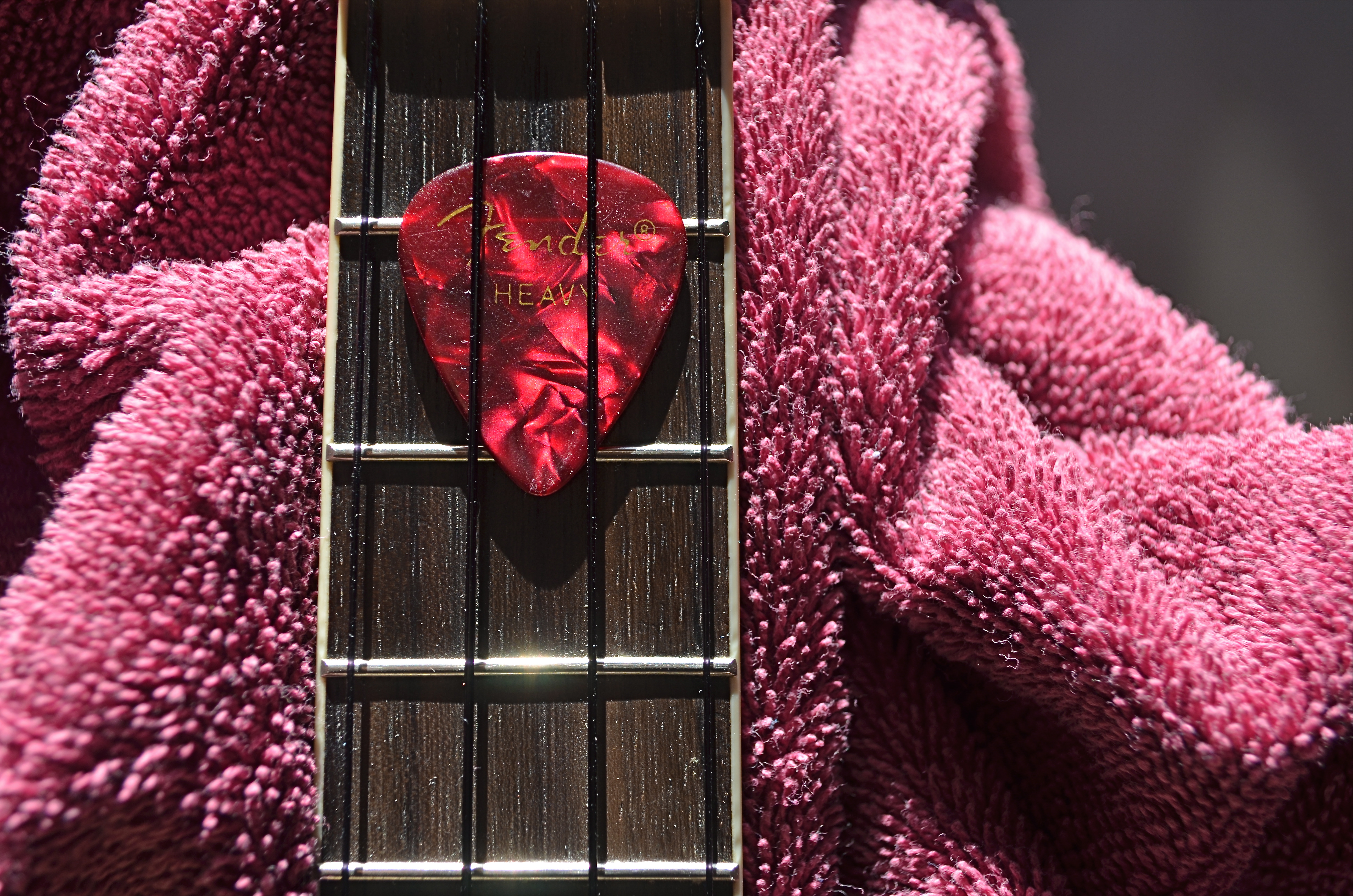 Same staging area, different day. This tight shot on one of my ukes was set up lying on its back, held aloft on a tall packing carton. 1/160 sec., f/5.6, ISO 100, 30mm.