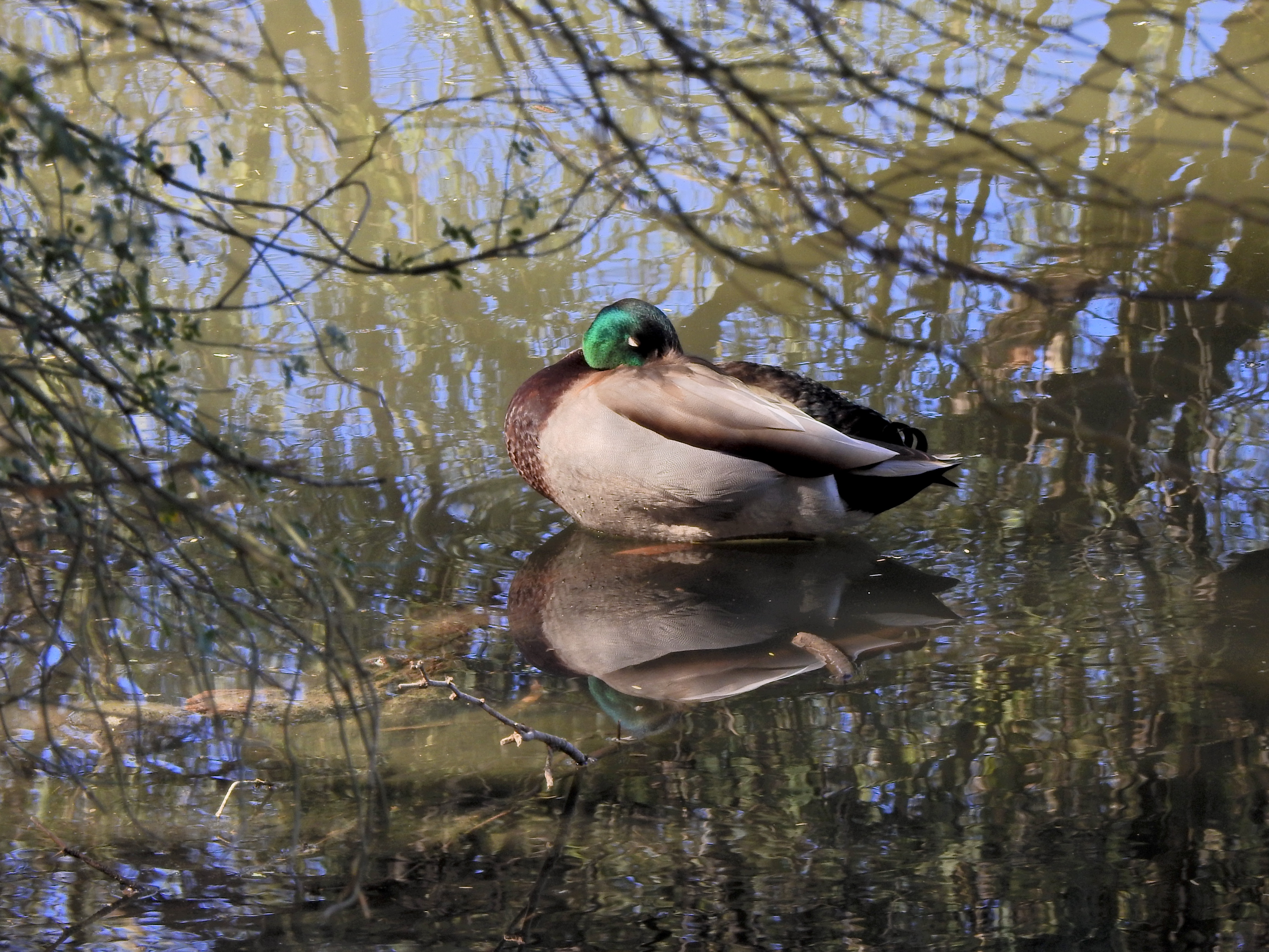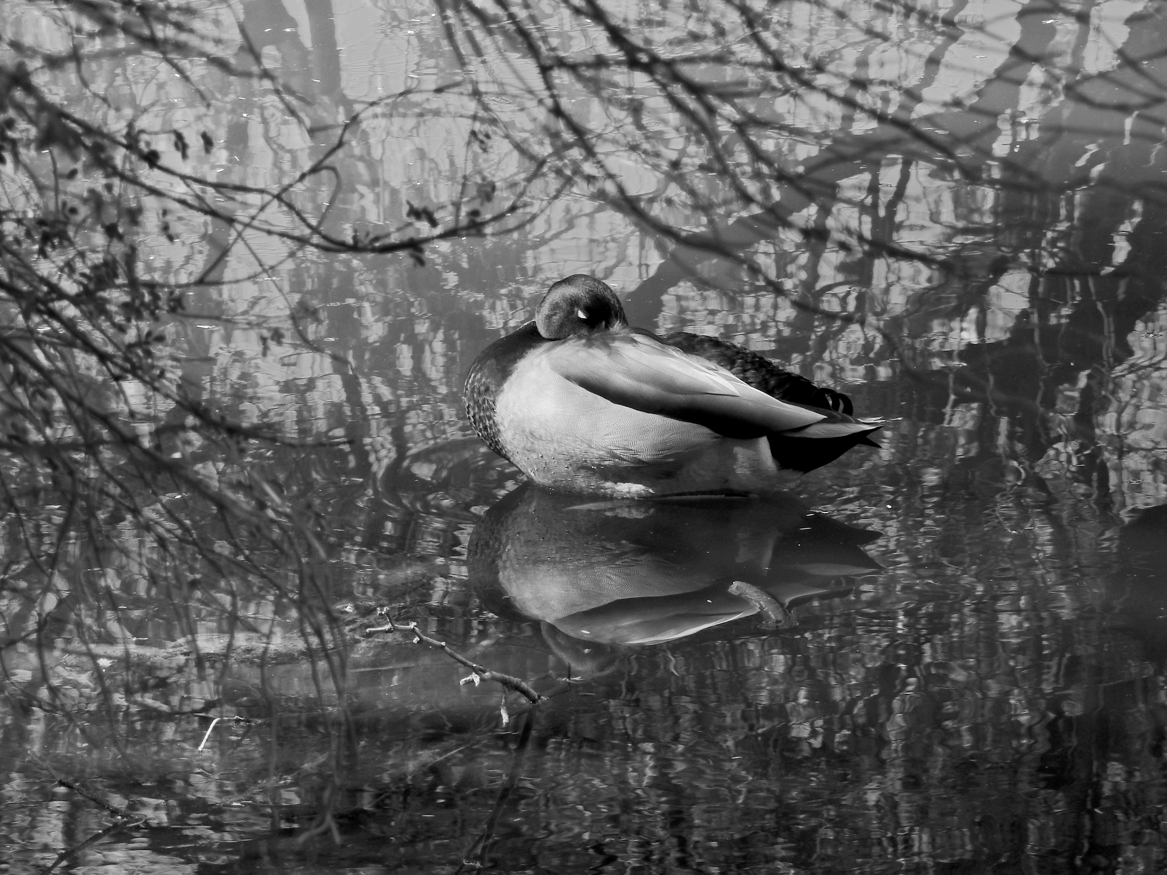 This color original is lovely, but the multiple hues on the water seem to fight with the duck for attention.