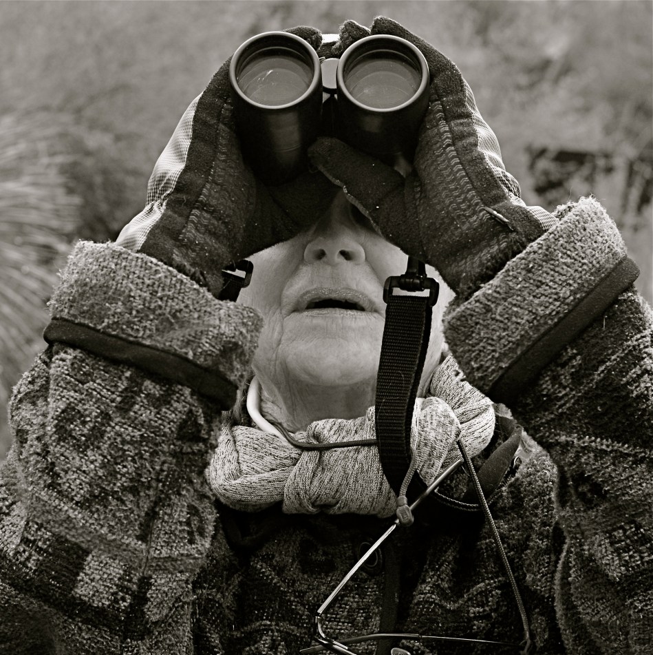 In the above image, we are, as viewers, denied access to the birdwatcher’s eyes, unless you interpret her binoculars as a kind of abstract substitute. But does that make the picture not a portrait? Using every other feature and prop available to the shooter, is there insufficient evidence to properly tell her story? Are we at all uncertain of her intent, enthusiasm, state of mind? Is her zeal any less obvious without those windows to the soul in sight? Or to think of it another way, would the picture have any greater narrative power if her eyes were visible?
