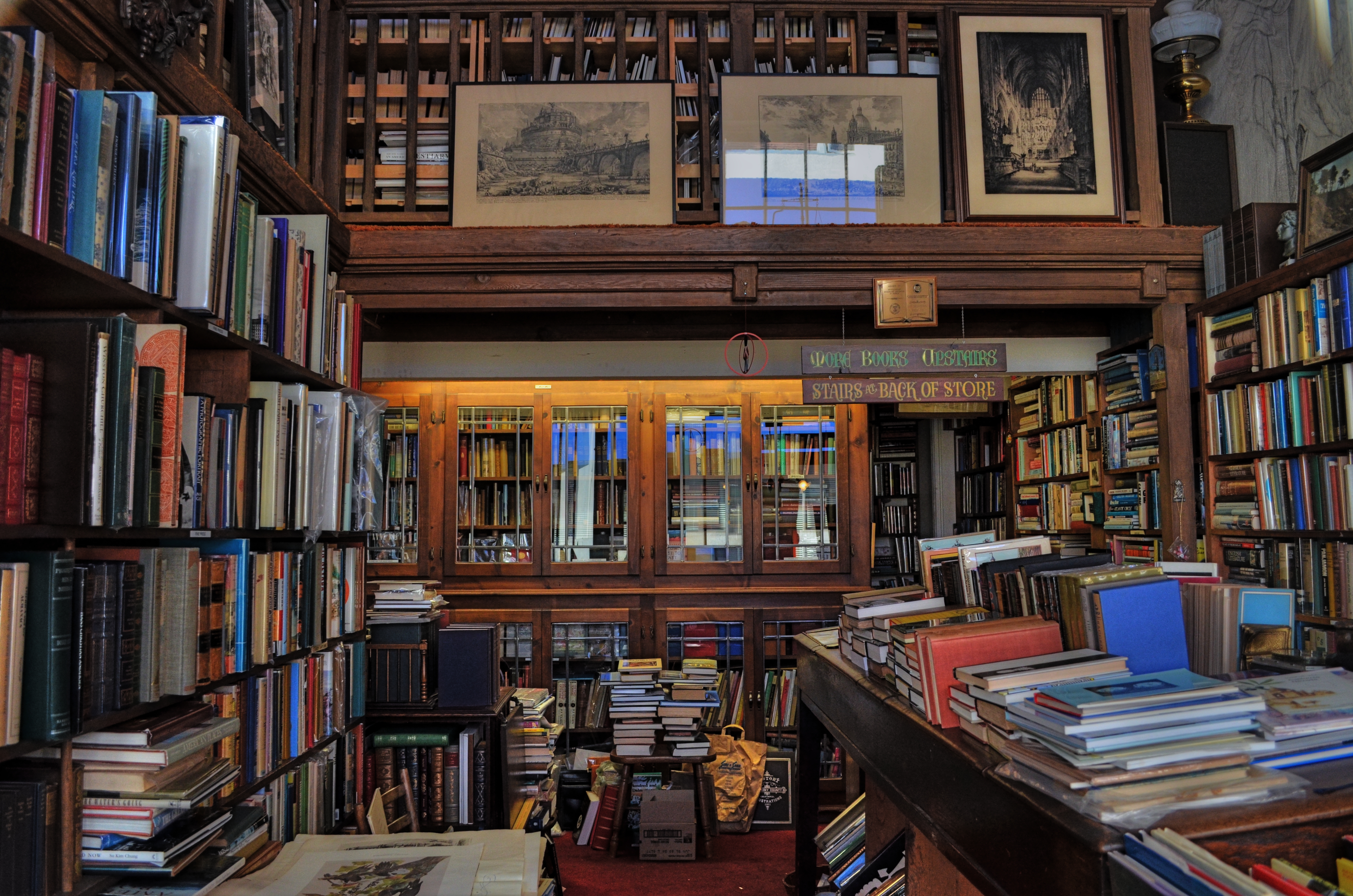 I WILL DO ANYTHING TO PHOTOGRAPH BOOKSTORES. Not the generic Costco and Wal-Mart bargain slabs laden with discounted bestsellers. Not the starched and sterile faux-library air of Barnes & Noble. I’m talking musty, dusty, crammed, chaotic collections of mismatched, timeless tomes…. “many a quaint and curious volume of forgotten lore” as Poe labeled them. I’m looking for places run by dotty old men with their glasses high on their forehead, cultural salvage yards layered in multiple stories of seemingly unrelated offerings in random stacks and precarious piles. Something doomed by progress, and beautiful in its fragility.