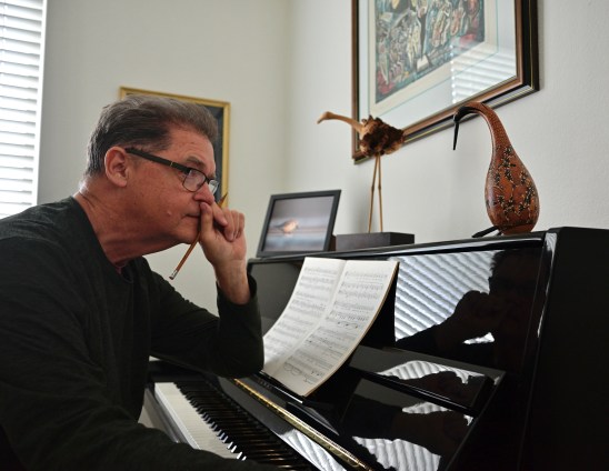 This week, I continued with a birthday ritual I began a while back in posing for the one formally planned selfie that I do per year. There are other, quicker self-snaps, some of them accidentally adequate, but I only have one day a year that I purposefully set up lighting, a specific setting, a shutter release and a tripod, spending several hours snapping dozens of frames in search of an expression that approximates my true inner mind as I’m crossing from one year to another. Each year, I take into account the images that preceded the present year, trying to vary my poses to show some other side of myself that may not have been present in the earlier editions. This year, I was definitely out to strike a contrast.