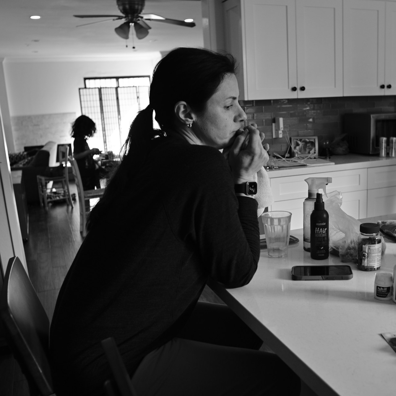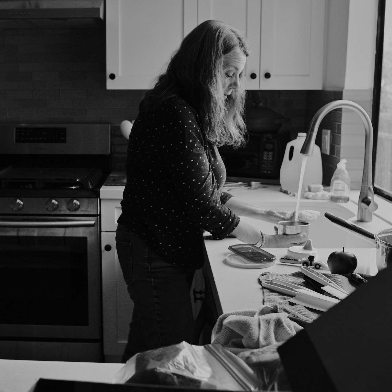 Three years ago, during an ordinary visit to my wife’s son and his family, I had the occasion to observe both her and her daughter-in-law, gathered within a few feet of each other, each submerged within quiet worlds of their own making, Marian musing over a sinkful of dishes, Erin taking a breath between Momtasks. Both women possess faces which both reveal and conceal, making them irresistible for frequent visits from my camera. I know them both well and yet could never really, fully know them at all, making the next images of them magical with potential.