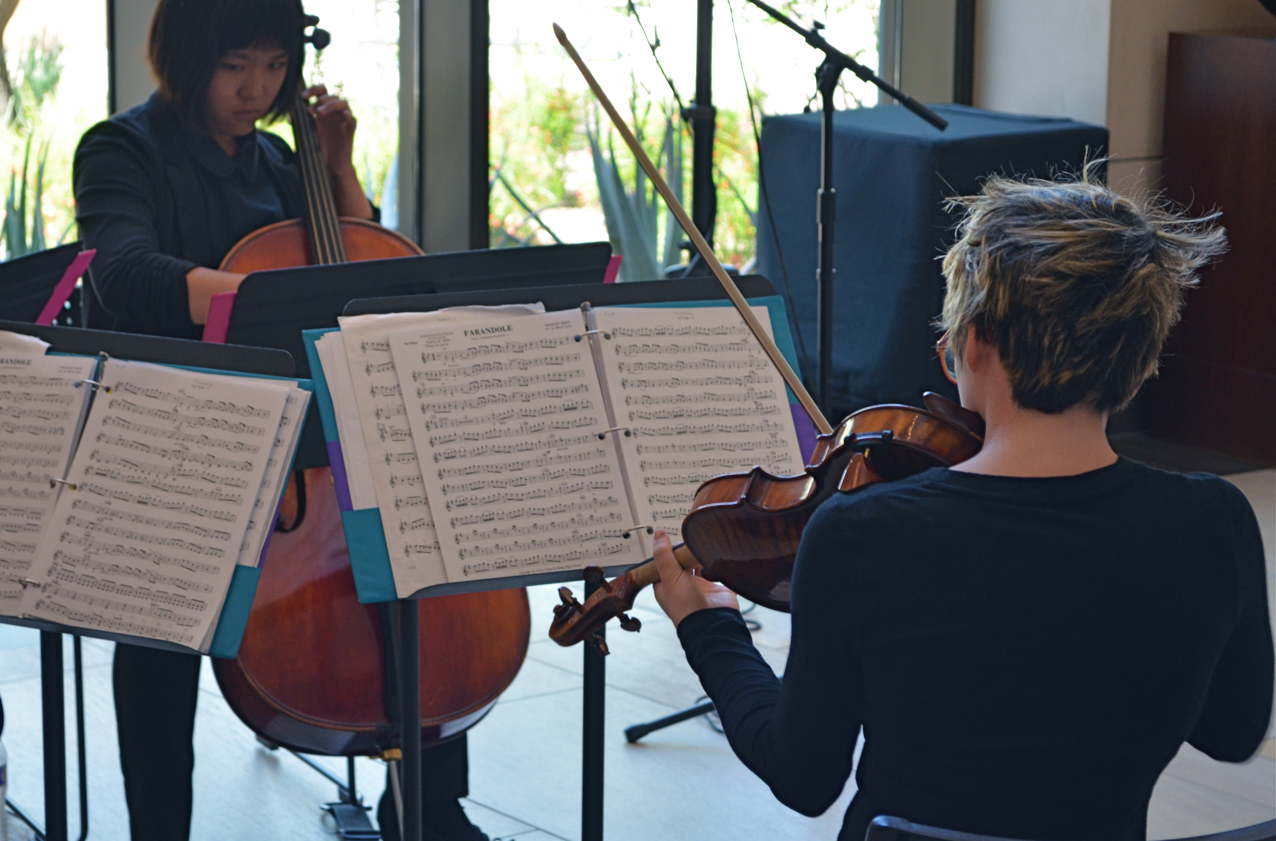 As the music evolved, the two ladies seen above were, in different instants, either in charge of, or at the service of, the energy of the moment. For this picture, I saw more strength, more power in the back of the violinist than in the front of the cellist. It was body language, a kind of structural tug between the pair, and I voted for what I could not show fully. As it turned out, the violinist actually has a lovely face, one possessing a stern, disciplined intensity. On another day, her story would have been told very differently.