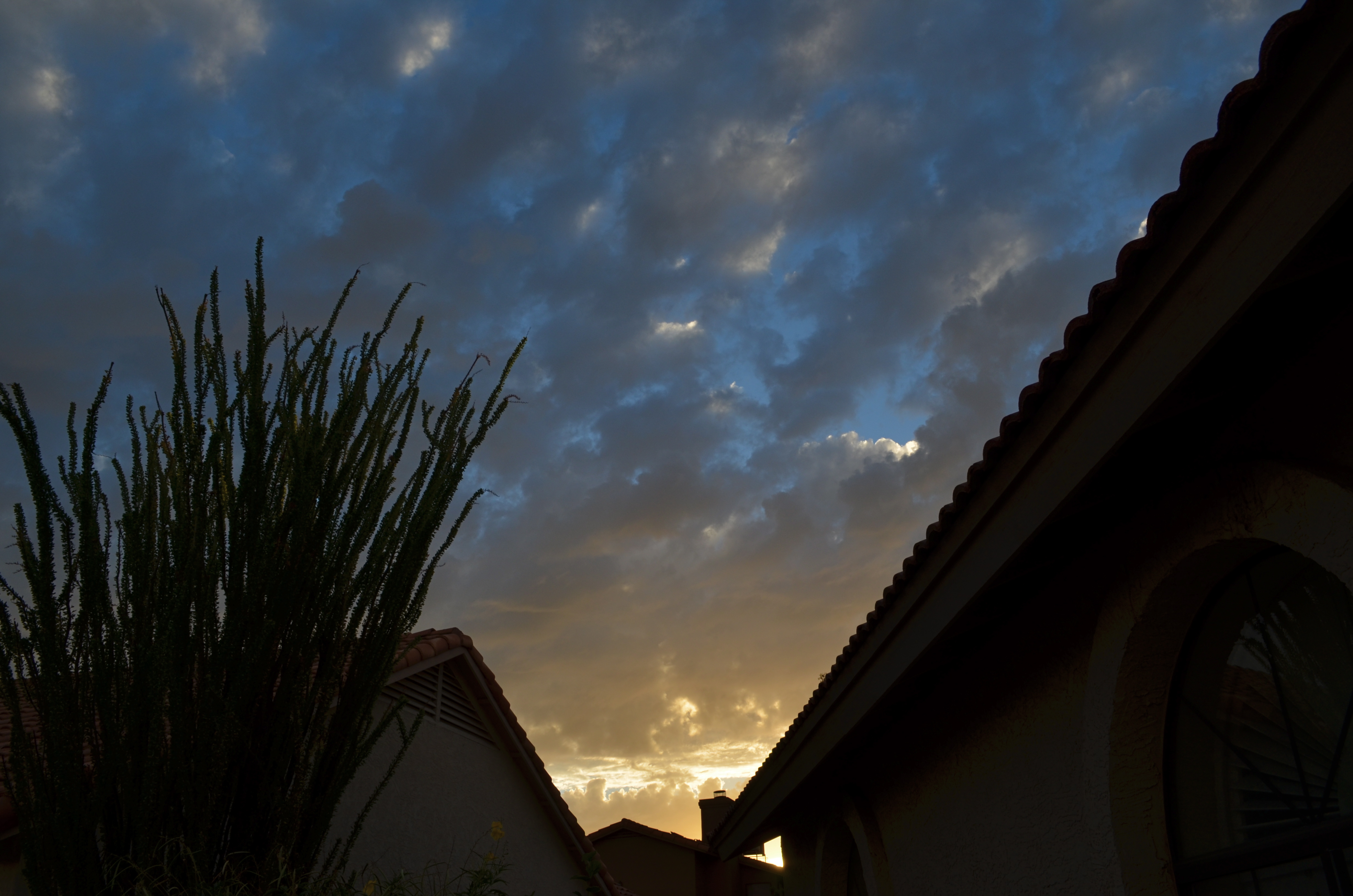 This is the kind of sunset that only becomes possible near the end of the rainy season (a relative term!) in the Sonoran desert. You get more days with at least some clouds overhead, breaking the mega-blue monotony of the southwestern sky. And you get wonderful gradations of color as the last light of day vanishes over the horizon. In this image, that light was changing, and leaving, rapidly. Not a lot of time to weigh options, but a perfect place to flail away and maybe get something. This was not shot on auto mode, but I made a very quick, simple calculation in manual, and kept the prep as brief as possible. Later on, I was tempted again to go on tinkering, considering a lot of little “fixes” to “improve” my result. To my eventual satisfaction, I sat on my hands, and so what you see is what I got…no frills, no fuss, no interfering with my self.