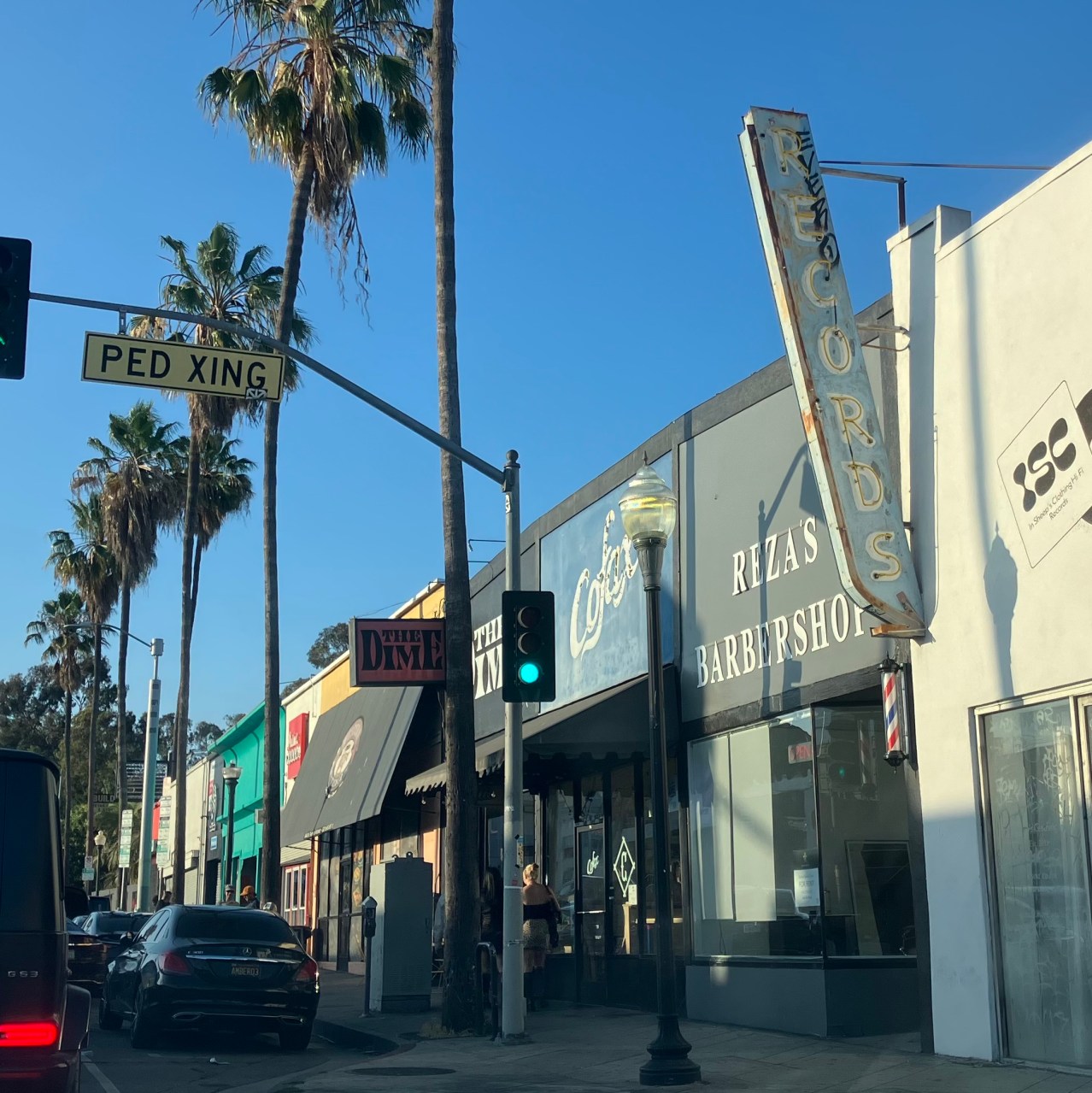 The shot was taken in the circular rotunda that acts as the initial vestibule of entry to Griffith Observatory, which sits like a gleaming Art Deco Sci-Fi castle atop a promontory that overlooks downtown Los Angeles. The Keck rotunda’s walls are rich with murals that celebrate the great celestial and scientific discoveries of the ages, and the Foucault pendulum, seen here as the recessed circle that several patrons are starting into, bathes faces in a warm uplight that makes them look like glowing participants in a Maxxfield Parrish painting. In this snap (and it was a “snap”, with no more planning or intention than the word implies) the random poses of the crowd, including the young woman doing an “oh, wow” as she enters through a door, look impossibly staged, something that endears it to me years later.
