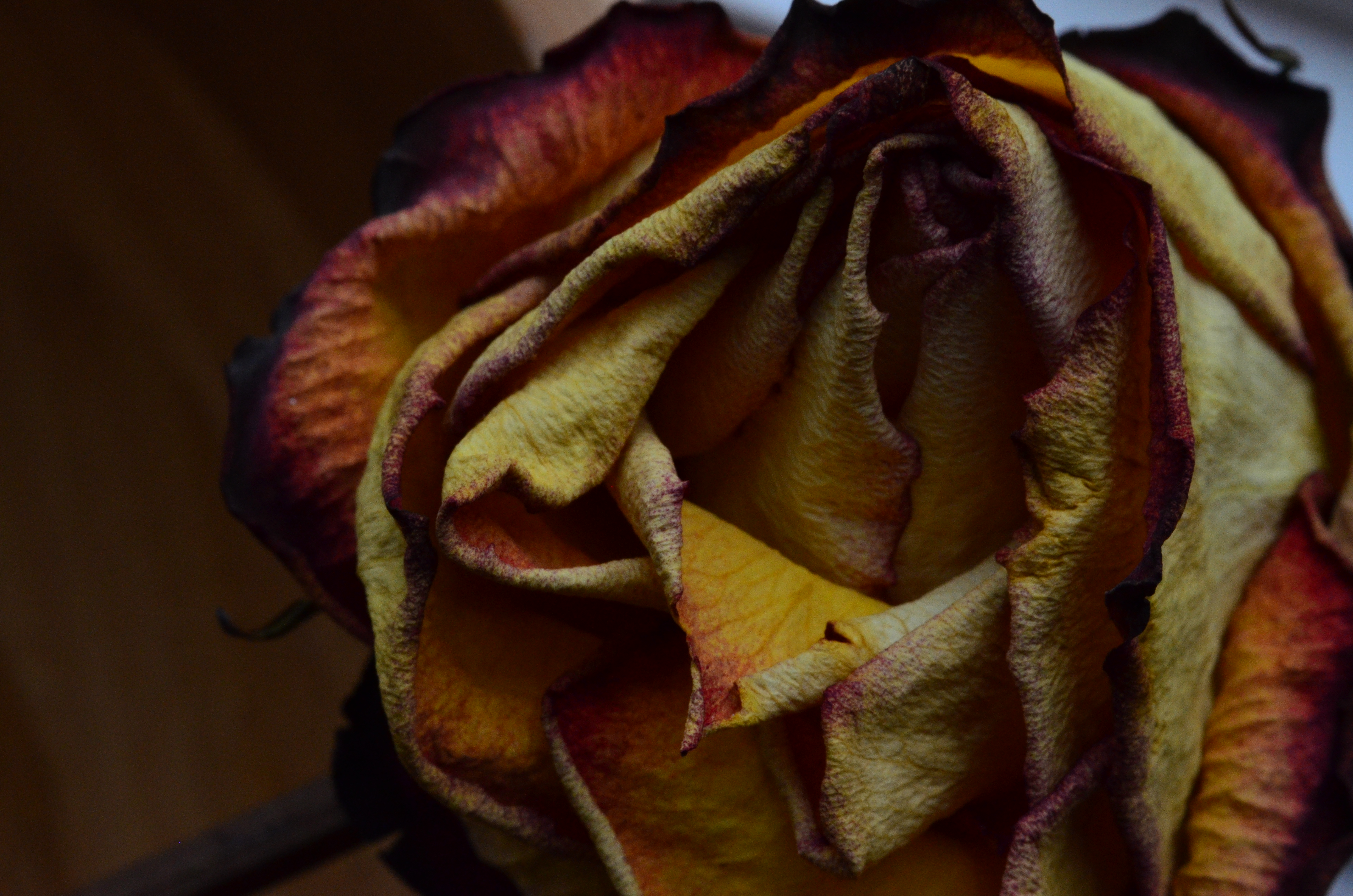 The rose seen above, taken with a Lensbaby Velvet 56 (a wonderful portrait lens which doubles as a decent macro), was days dead when I came upon it, and yet it presented textures more intriguing, colors deeper and richer than its fresher vase-mates. Is this ghoulish?