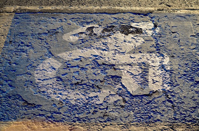 And then there are the signs that nature itself takes a hand in reshaping. Wear and tear can render warnings and advisories ironic, even useless. Is a stencil symbolizing a handicapped parking space subject to reinterpretation, once it’s been weathered into abstraction, as seen here? If a safety zone sign is smashed by one careless car too many, are we seeing a good argument for further civic action? Street photography is partly about people and partly about how people fit (or don’t fit) into the infrastructures of their lives. Sometimes, of course, we can try a little too hard to make sense of it all. I recall, decades ago, during the making of one of my many ill-advised student films, falling in love with a particular EXIT sign and deciding that I should shoot enough movie film to edit a shot of it into multiple mileposts of my magnum opus. Sadly, the movie in question didn’t have much to conceptually hold it together beyond the occasional popping-up of the word EXIT between sequences. Truly, if I were hooked up to a polygraph I could prove that I remember nothing else about the project. However, I can still see that sign in my dreams/nightmares. Sometimes the magic works and sometimes it doesn’t.